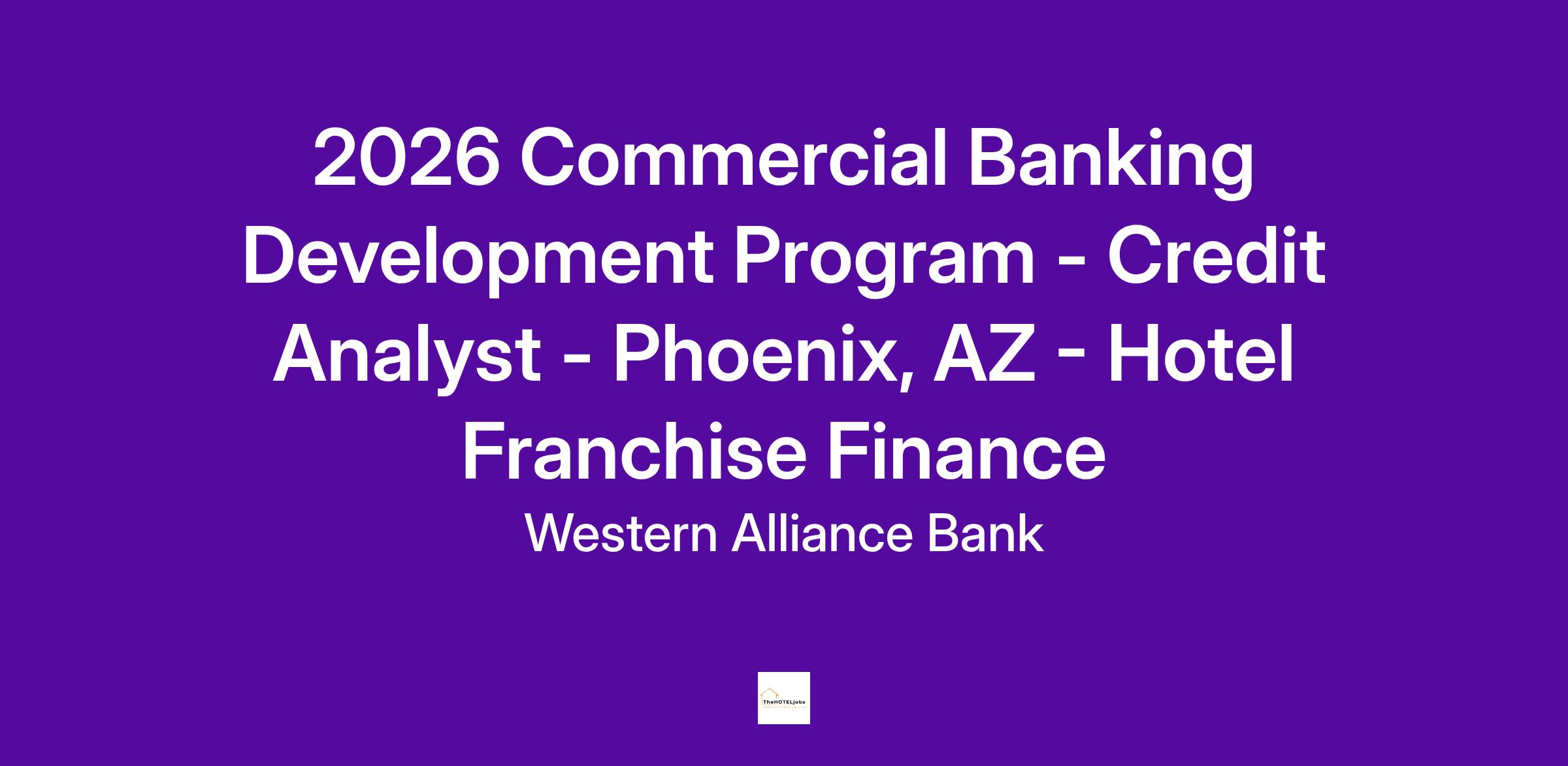2026 Commercial Banking Development Program - Credit Analyst - Phoenix, AZ - Hotel Franchise FinanceLocation: