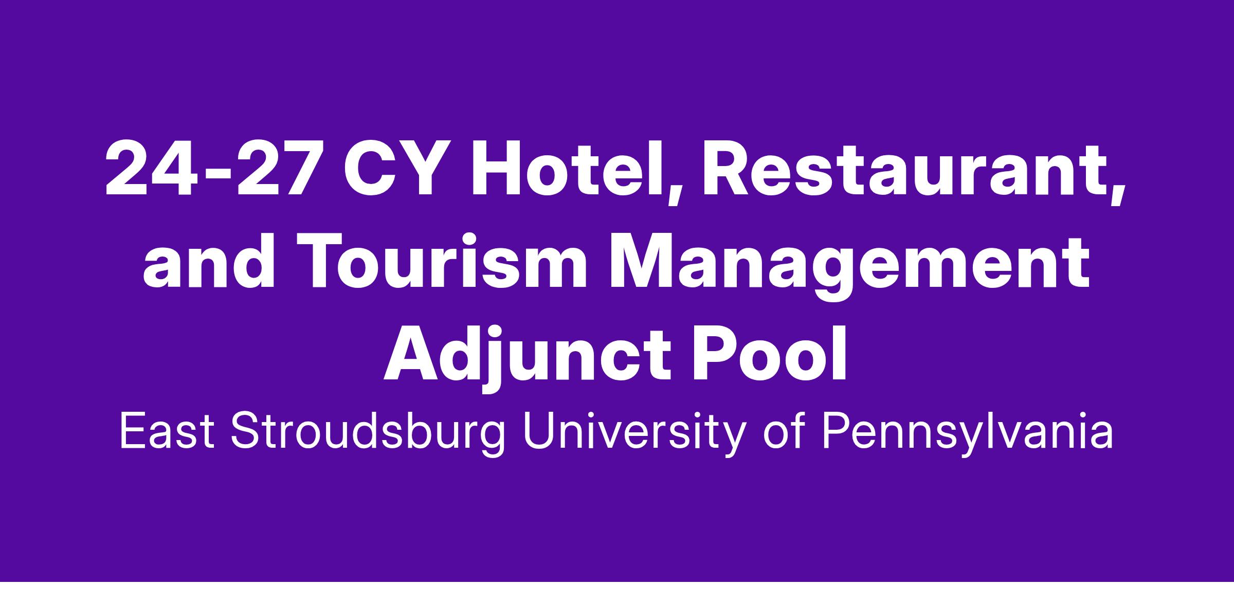 The Department of Hospitality, Recreation, and Tourism Management at East Stroudsburg University is establishing a one-year, temporary faculty teaching pool. Candidates must be able to teach one or more of the following HRTM 331 Hospitality & Tourism Marketing and HRTM 431 Hospitality & Tourism Strategic Market Planning subject areas. The successful candidate will be an active member of the department and will work to develop and mentor students. Applications on-hand will be used to fill vacancies as needed.