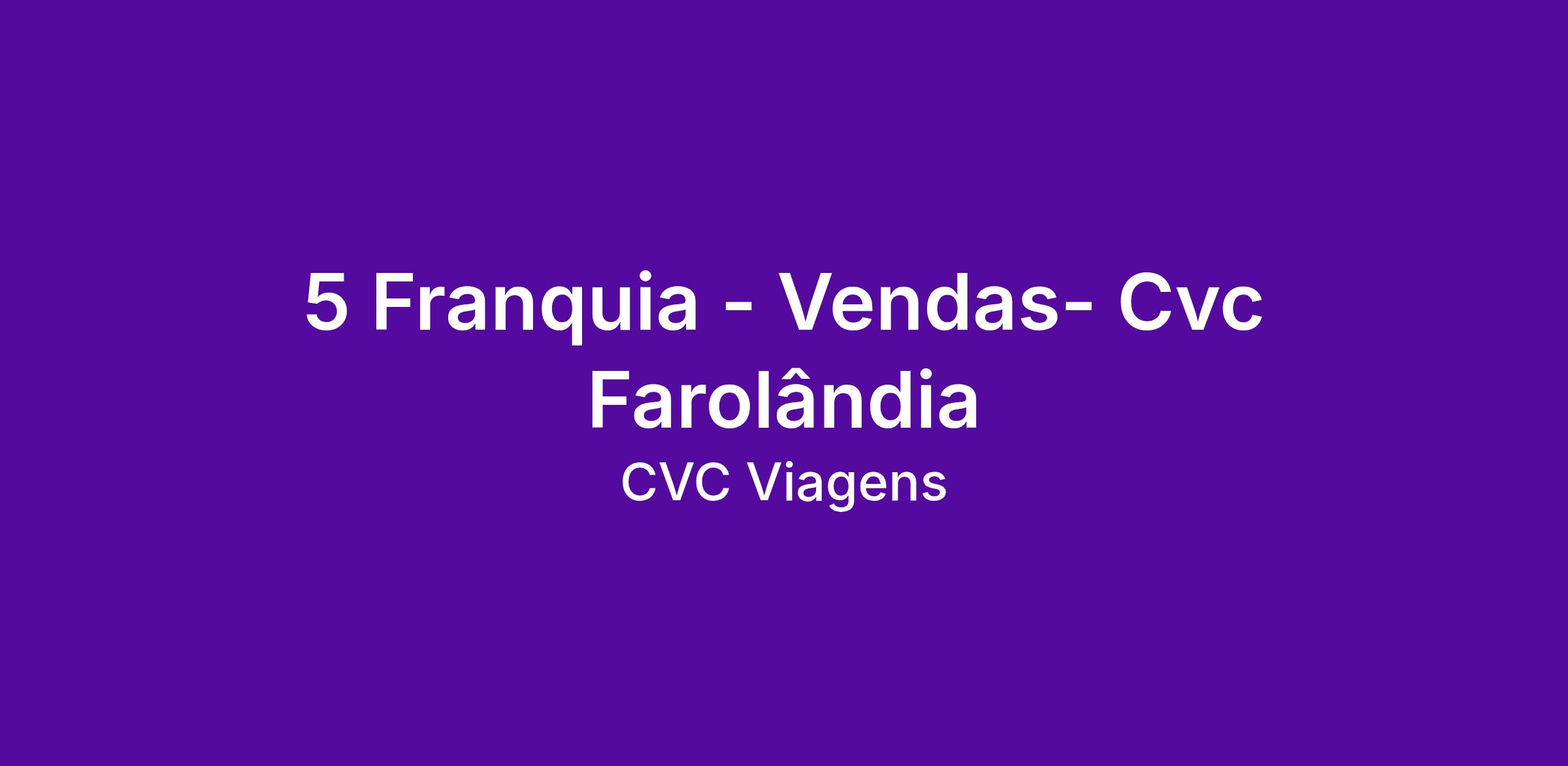DescriptionFaça parte do nosso time e conte com a força da CVC Viagens, marca consolidada no mercado nacional de turismo e franquias, pra realizar o seu sonho e de milhões de brasileiros.