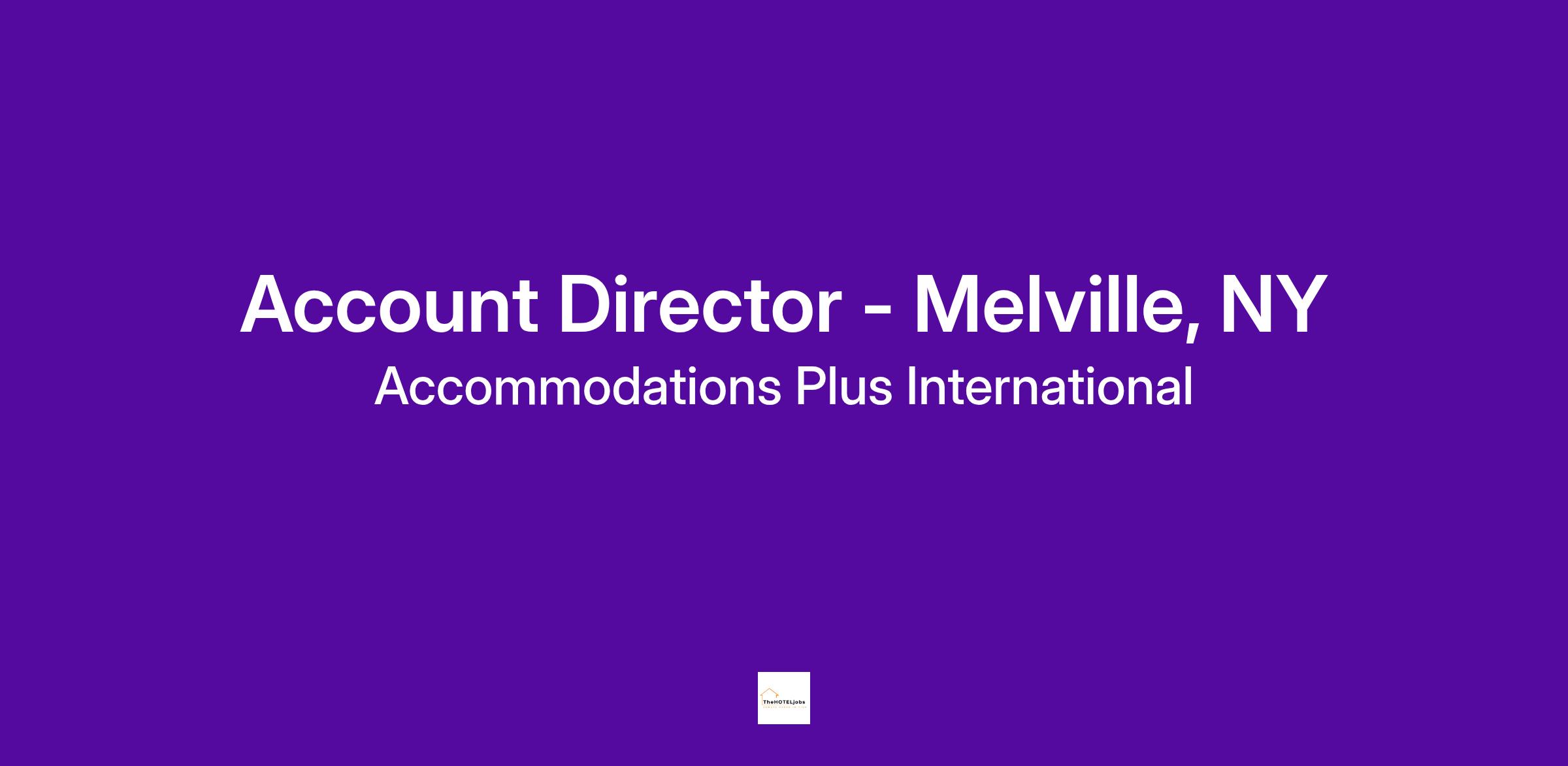 API is seeking seasoned professional to join our company in the role of an Account Director. The position will be based in our headquarters office located in Melville, New York.