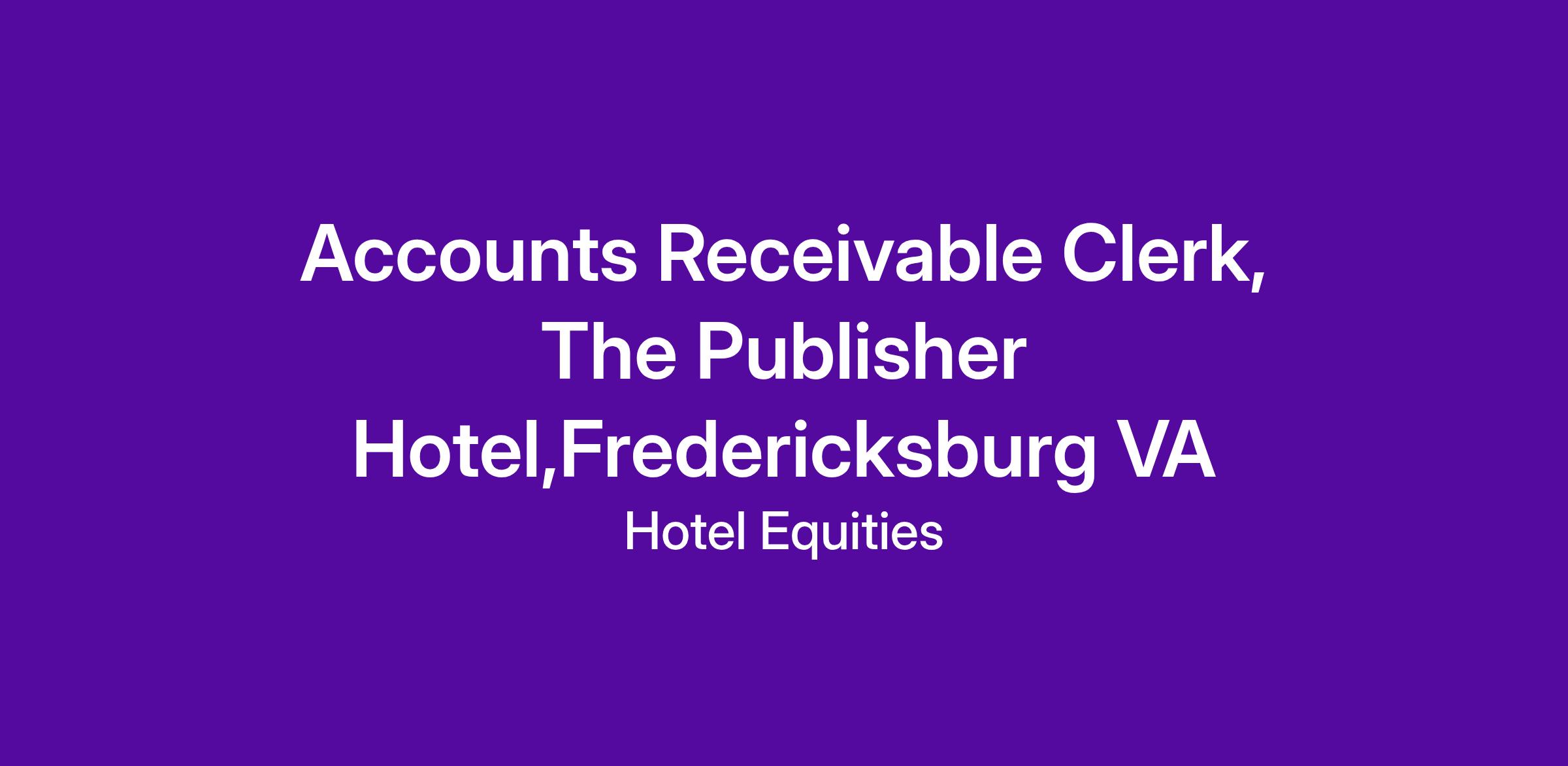 Greenwood Hospitality & Hotel Equities, a multi-award-winning hotel development and hospitality management company, is currently searching for a remarkable Accounts Receivable Clerk for The Publisher Hotel in Fredericksburg, VA.