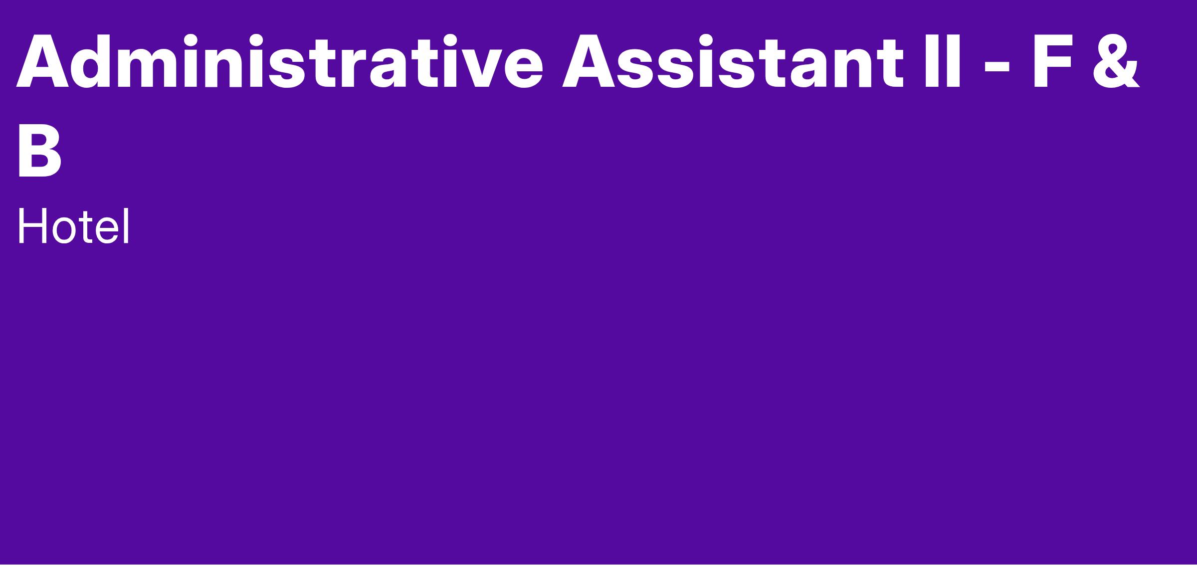 The Food and Beverage Administrative Assistant is responsible for providing full service administrative support to the Vice President, Directors, and Executive Chef. The Administrative Assistant will provide support to ensure efficient operation to the office, be responsible for confidential material, be familiar with food and beverage practices and procedures, and must be able to effectively communicate.