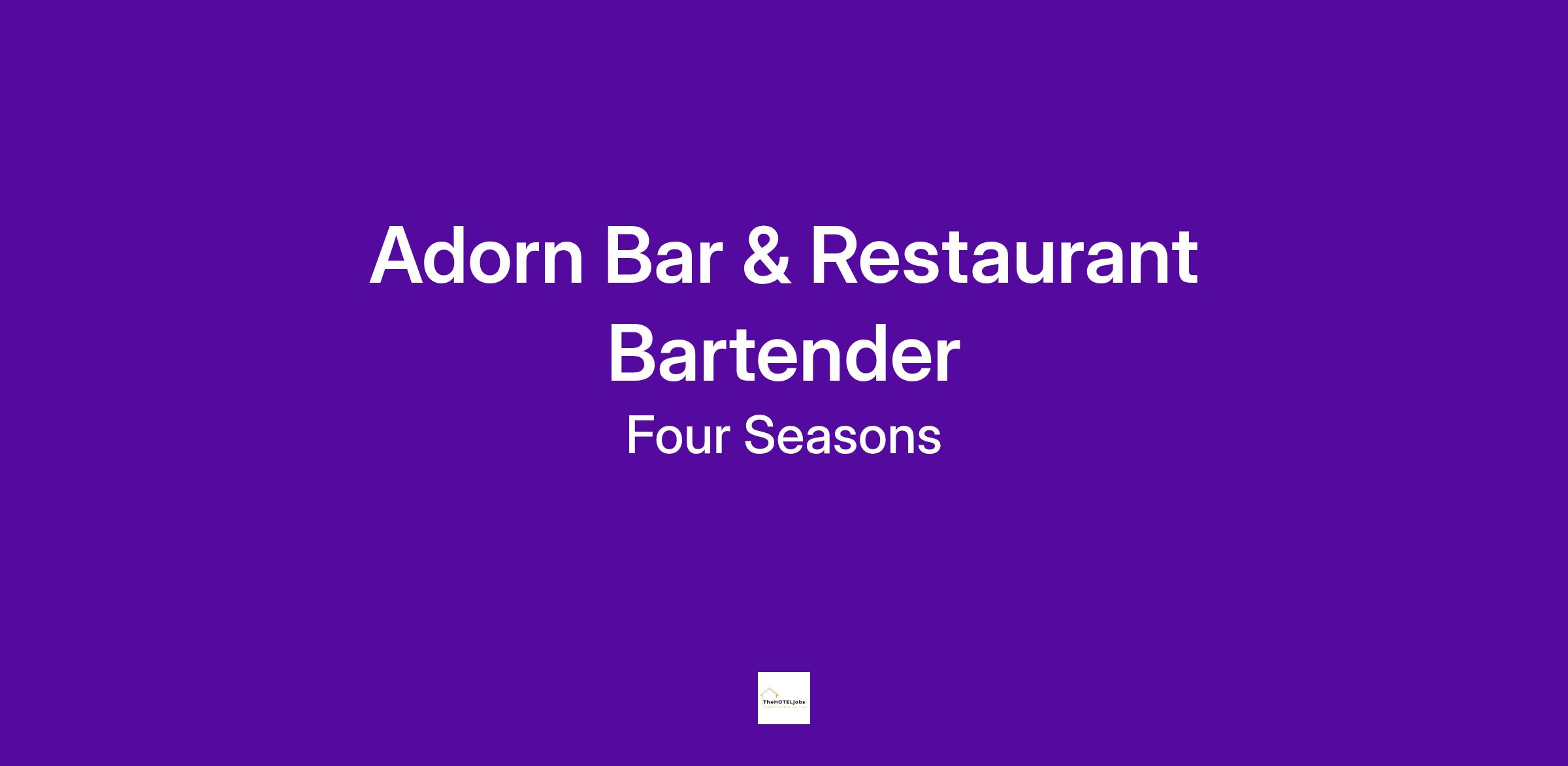 The Four Seasons Hotel Chicago is looking for a Bartender for Adorn Bar & Restaurant who shares a passion for excellence and who infuses enthusiasm into everything they do.
