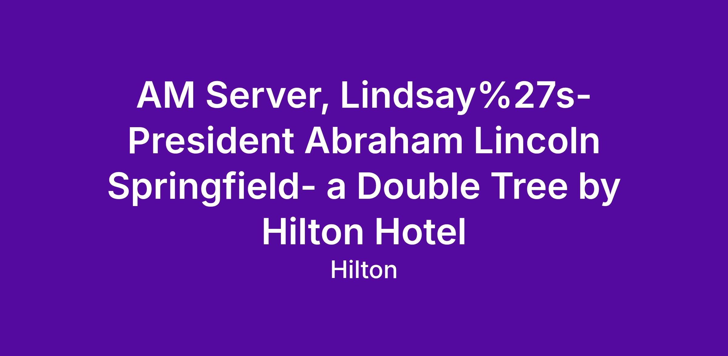 The President Abraham Lincoln Springfield, a DoubleTree by Hilton Hotel is set in the heart of historic downtown, Springfield, IL. Now seeking highly motivated people with a heart for service to join our Food & Beverage team!
