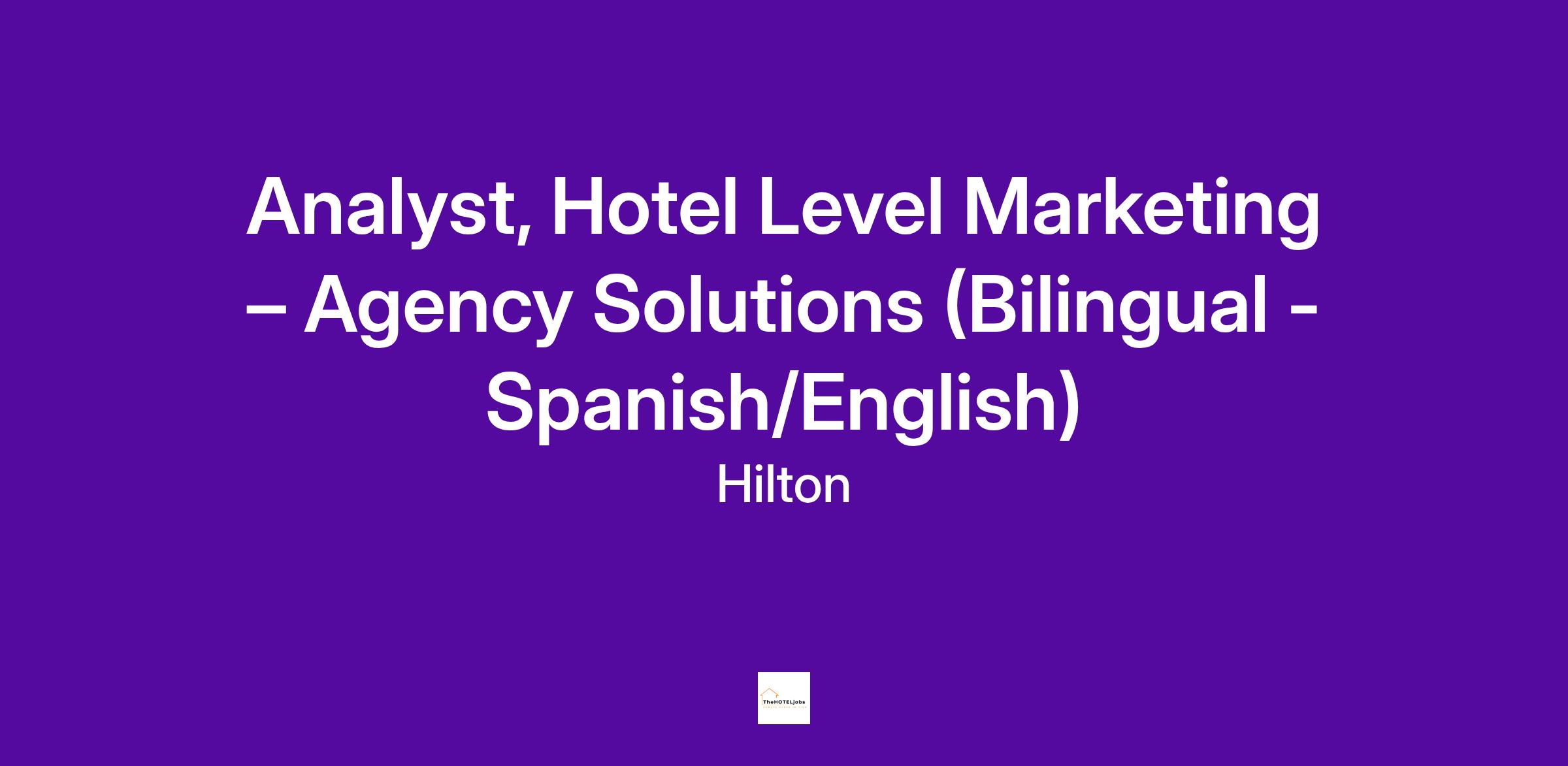 As an Analyst on Hilton's Americas Marketing team - reporting into our Manager, Hotel Level Marketing Agency Solutions— you will be part of the broader Commercial Services organization collaborating with revenue management, sales, and analytics, the core of Hilton's commercial engine, to deliver profitable growth.