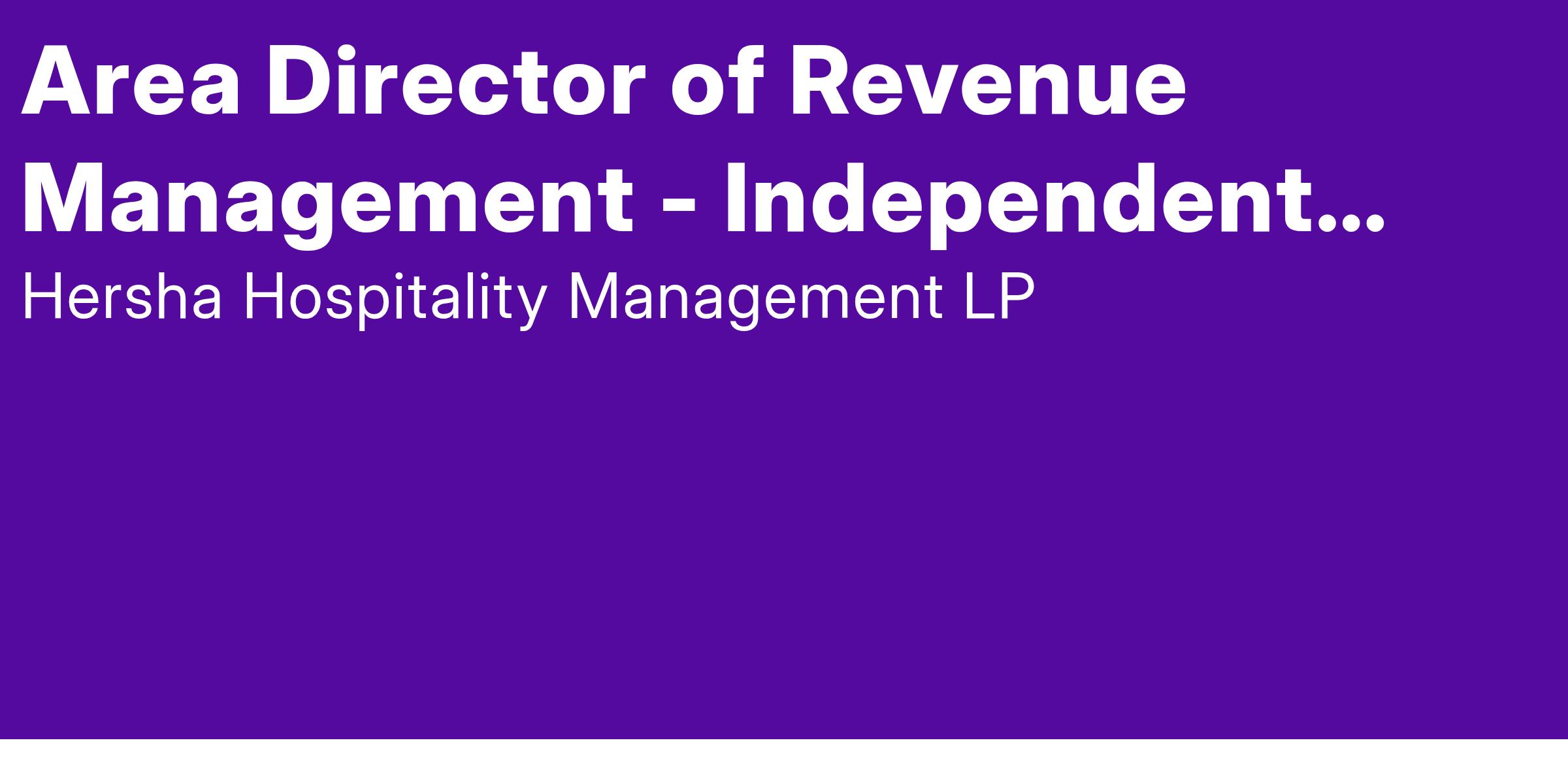 Opportunity: Area Director of Revenue Management - Independent Hotels