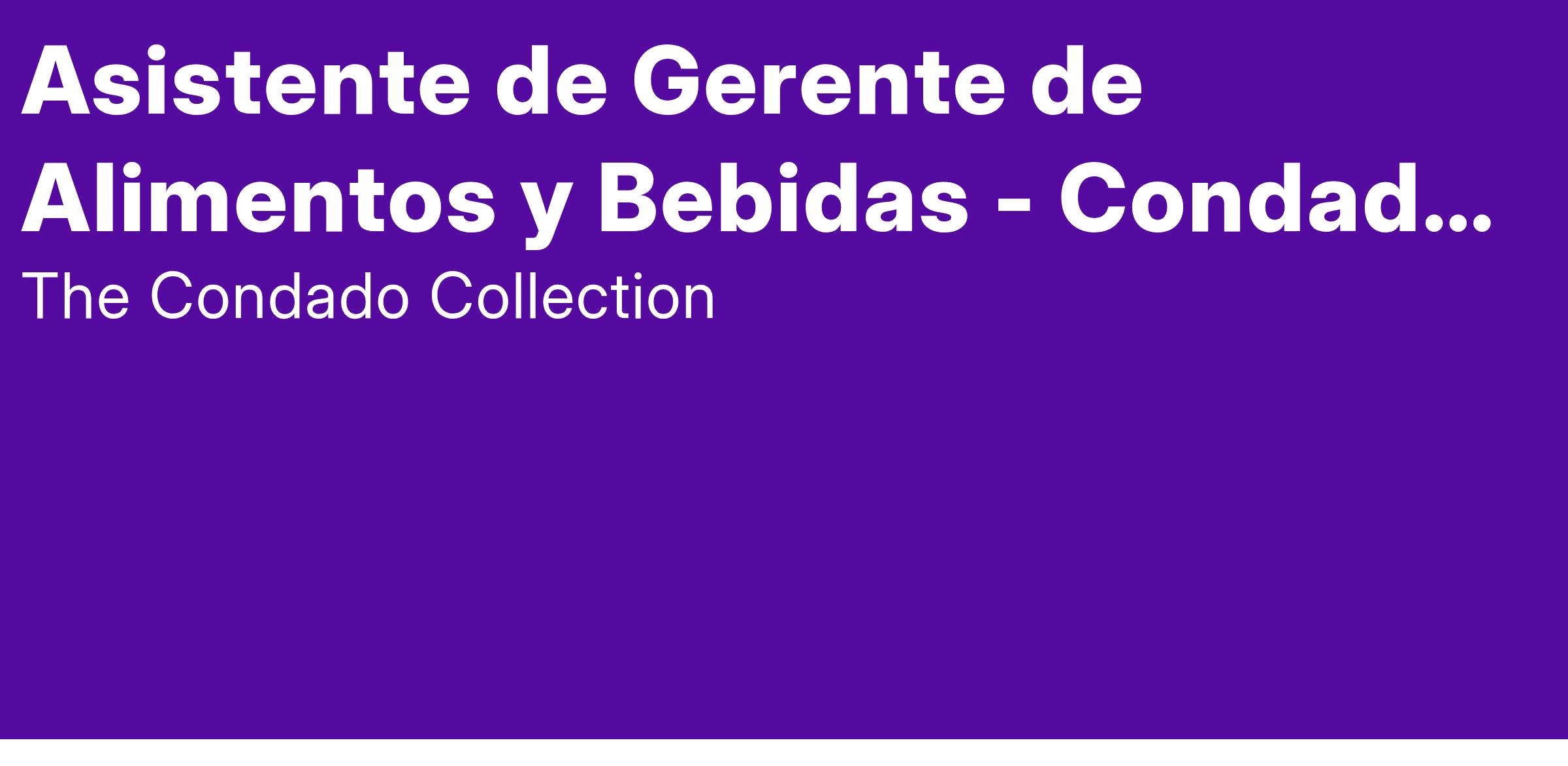 The Condado Collection es un empleador que ofrece igualdad de oportunidades. Creemos en contratar una fuerza laboral diversa y mantener una cultura inclusiva y centrada en las personas. Estamos comprometidos con la no discriminación por cualquier motivo protegido, como discapacidad y estatus de veterano, o cualquier otro motivo cubierto por la ley aplicable.