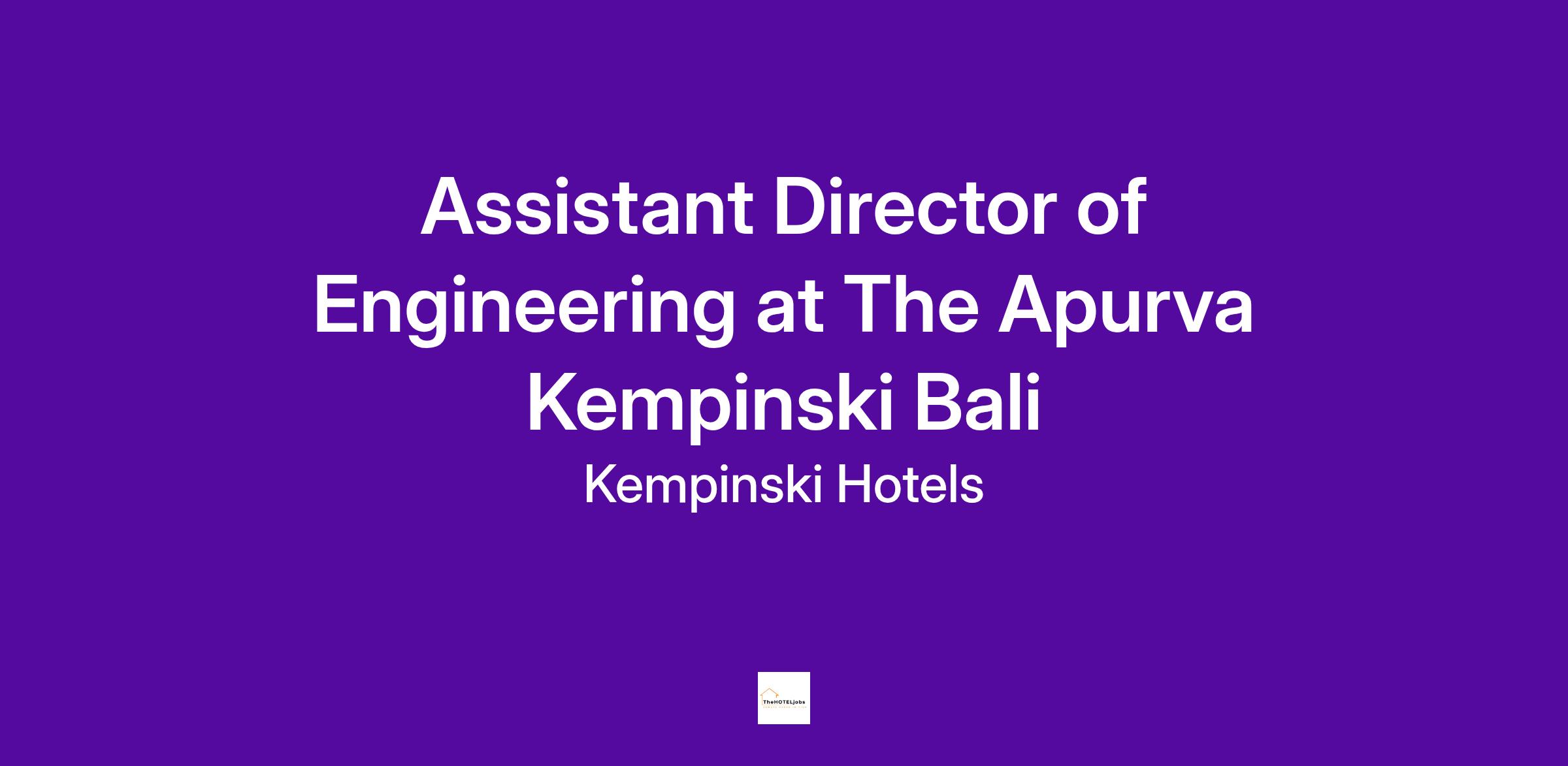Assistant Director of Engineering at The Apurva Kempinski Bali
