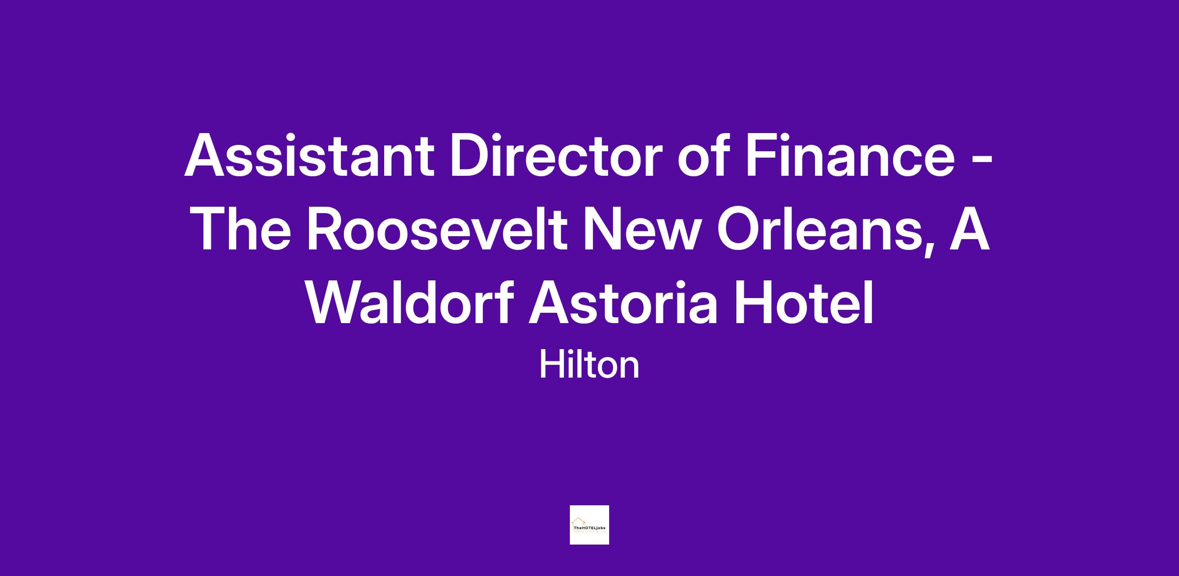 The Roosevelt New Orleans is currently hiring an Assistant Director of Finance. This position is responsible for assisting in the direction and administration of all financial operations of the hotel in the hotel's continuing effort to deliver outstanding guest service and financial profitability.