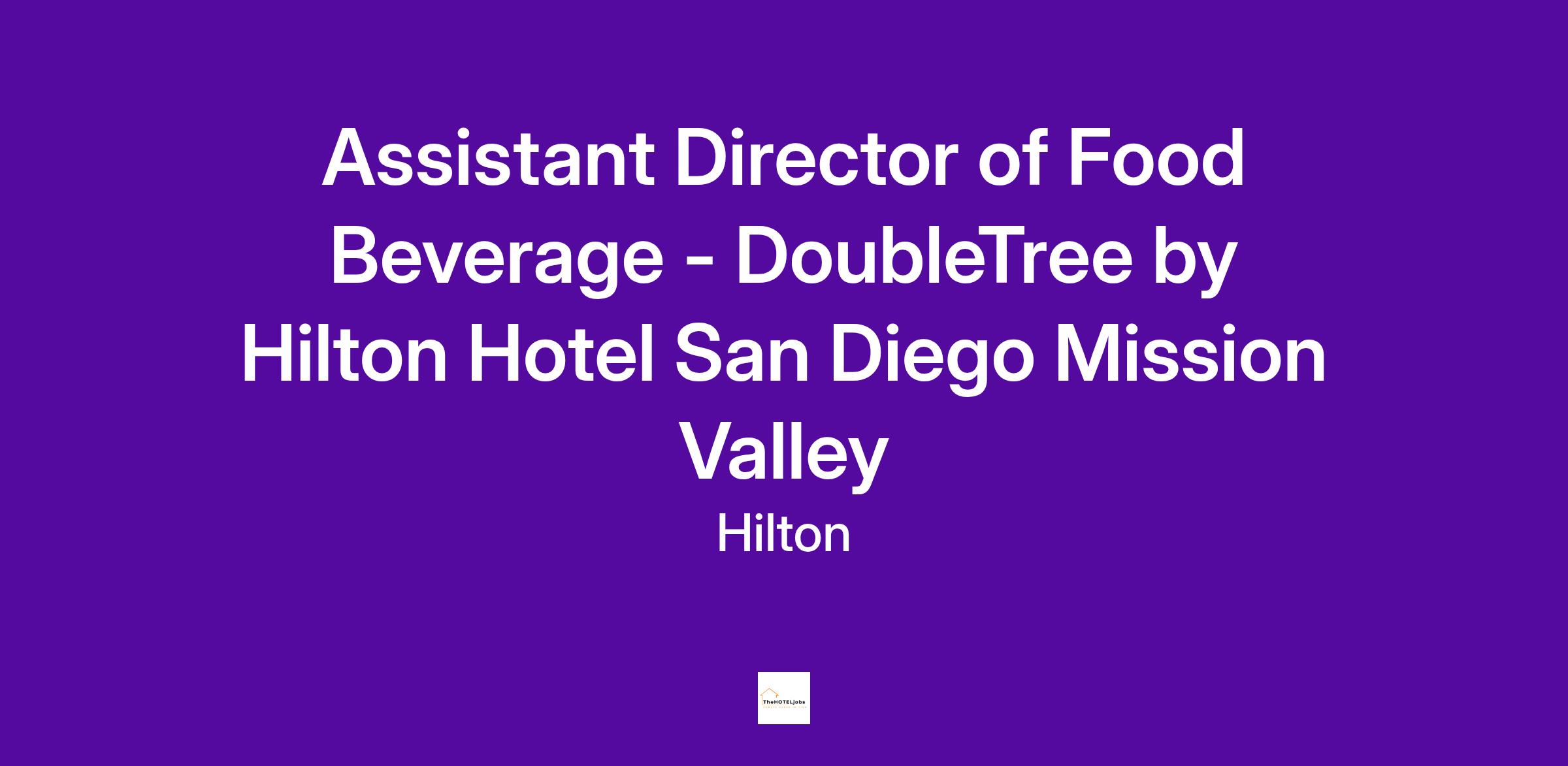 Doubletree by Hilton San Diego-Mission Valley is seeking an Assistant Director of F&B to support a fantastic team. The property has 32,000 sq. ft of meeting space, 300 guest rooms, and three restaurant outlets. With oversight of the restaurant operations, kitchen and banquet operations, this role will support the entirety of the F&B team.