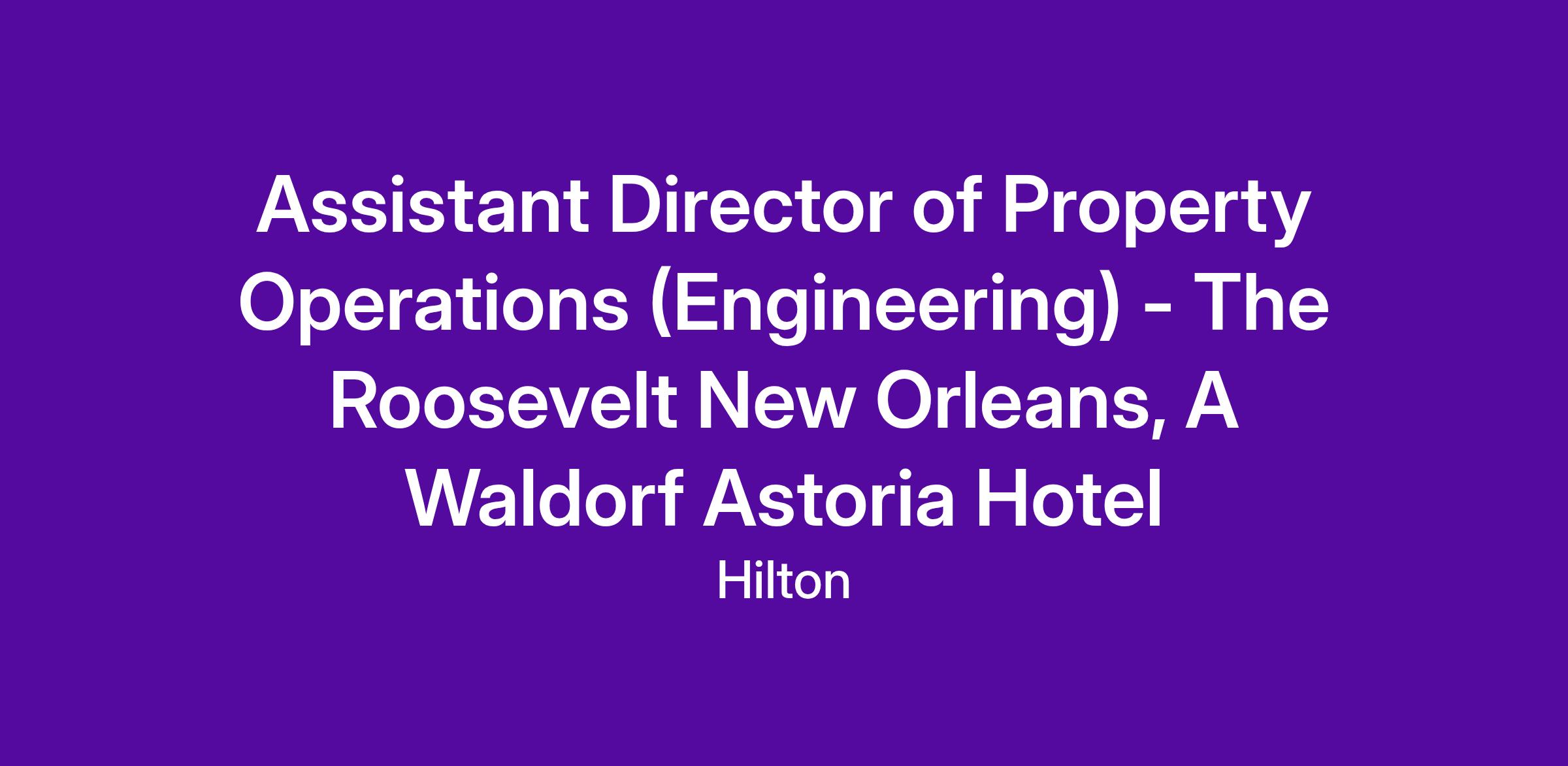 The iconic Waldorf Astoria property in New Orleans, The Roosevelt, is seeking an Assistant Director of Property Operations (Engineering) to join the team!