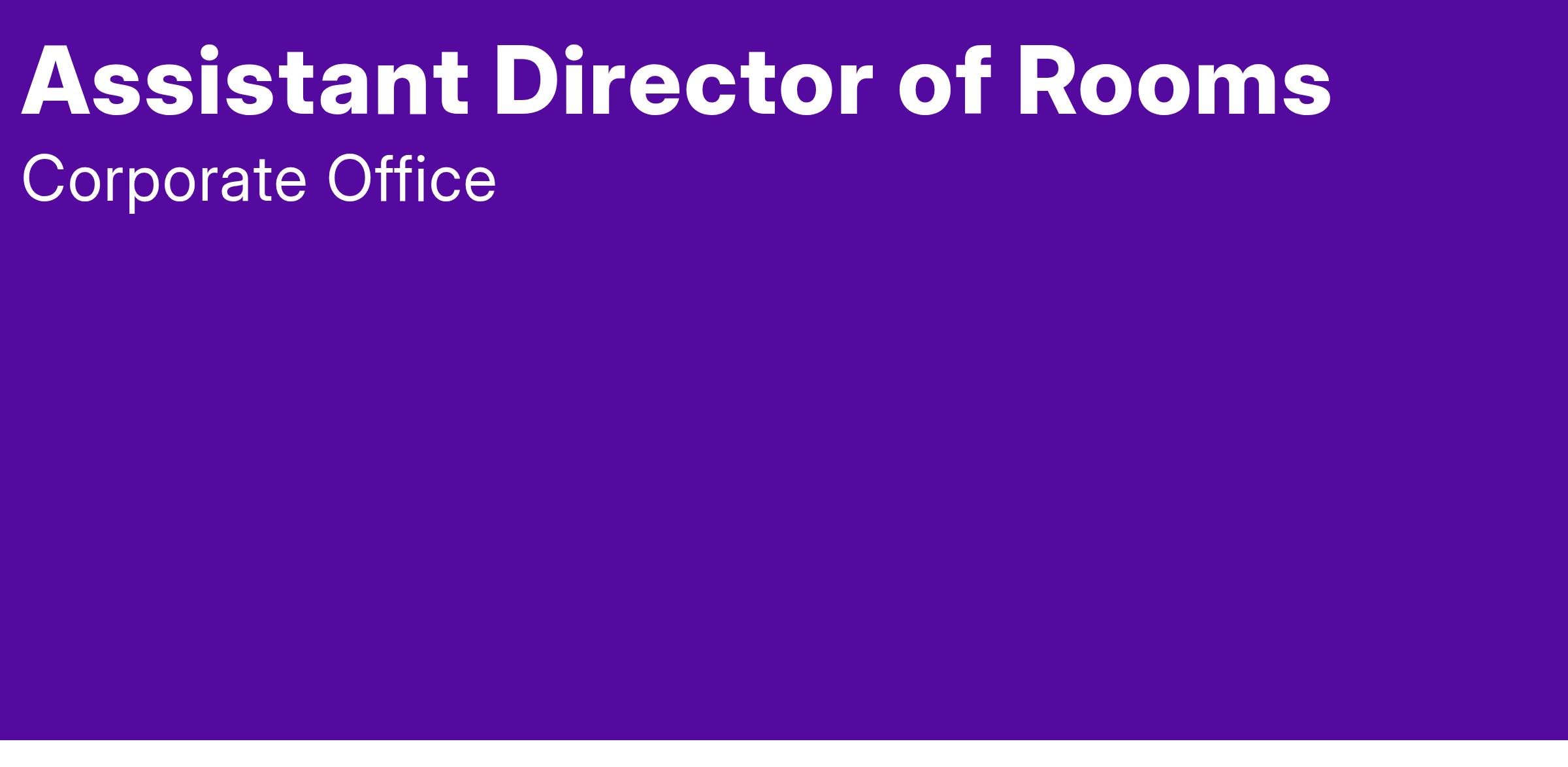 The Assistant Director of Rooms is responsible for ensuring the smooth operation of guest services, front desk, concierge and housekeeping in an attentive, friendly, efficient, and courteous manner. The position is also responsible for providing all guests with quality service while maximizing room revenue and productivity and developing managers and associates.