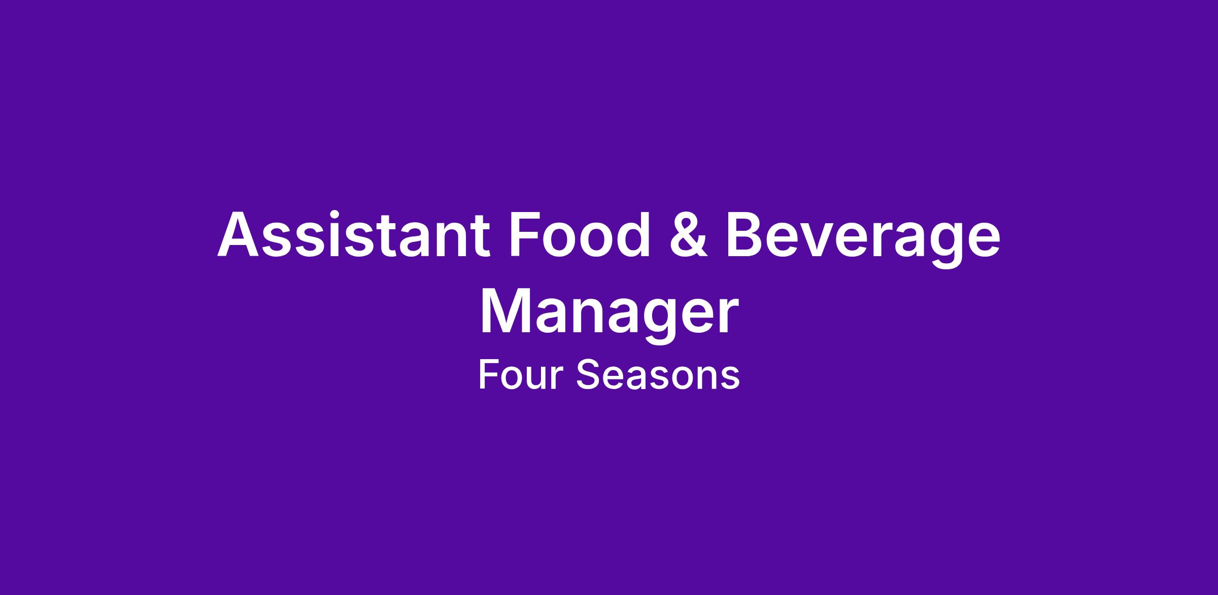 Welcome to wine country luxury. In the food and wine capital of North America, Four Seasons welcomes you to a one-of-a-kind wine country resort set within a world-class vineyard. Discover innovative and seasonal cuisine at Michelin-starred Auro, holistic spa rituals at Spa Talisa and thoughtfully personalized Four Seasons service. Raise a glass to all the best in life as you soak in magnificent views of Napa Valley from this Forbes Travel Guide Five-Star resort.Help us lead an exceptional team in creating unforgettable experiences for our guests. Four Seasons Napa Valley is hiring an Assistant Food & Beverage Manager—if you have a passion for hospitality, a knack for leadership, and drive for excellence, we’re ready for you!
