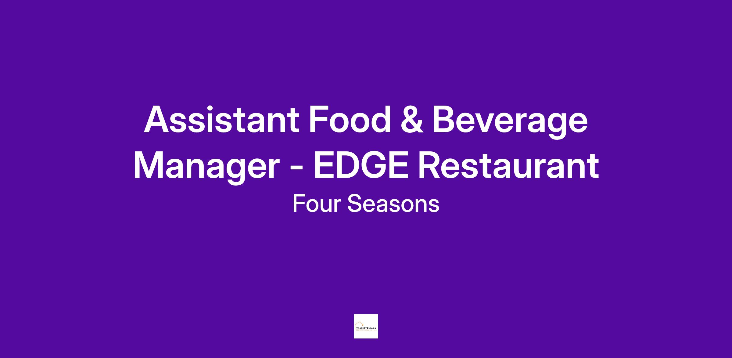 An urban retreat in the heart of the Mile High city. Plan a getaway at our elevated mountain metropolis. Explore a variety of sporting events and concerts across the Mile High City, feel the warmth of family-friendly performing arts classics or hit the slopes just a short drive away from Four Seasons Hotel Denver. Stay in for the quiet nights with 24-hour room service, savour locally sourced ingredients prepared by classically trained chefs, slip into bliss with handcrafted cocktails at EDGE Restaurant & Bar or unwind at our spa with a selection of rejuvenating treatments.Assistant Food & Beverage Manager, Full-Time