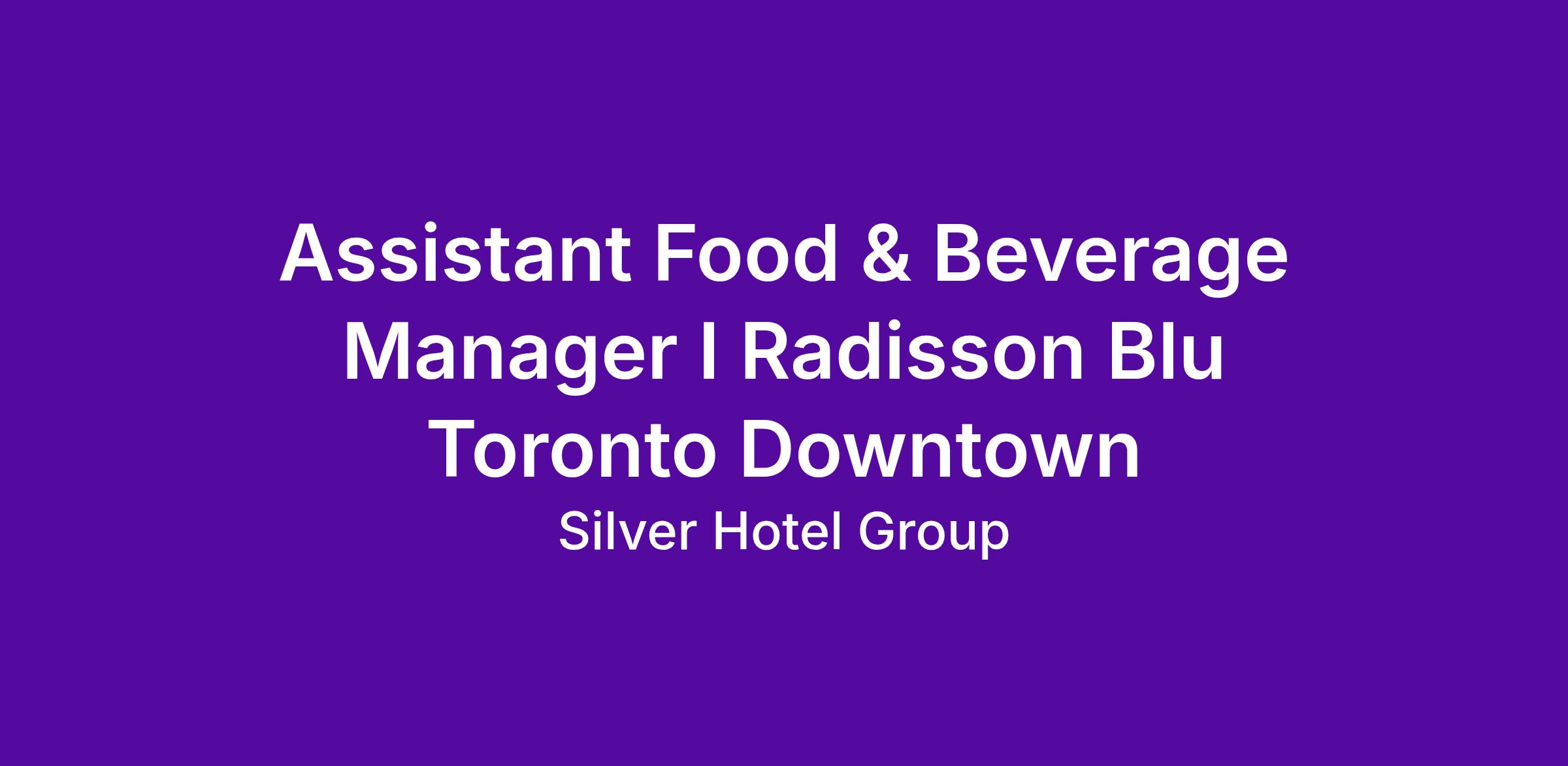 Assistant Food & Beverage Manager l Radisson Blu Toronto Downtown
