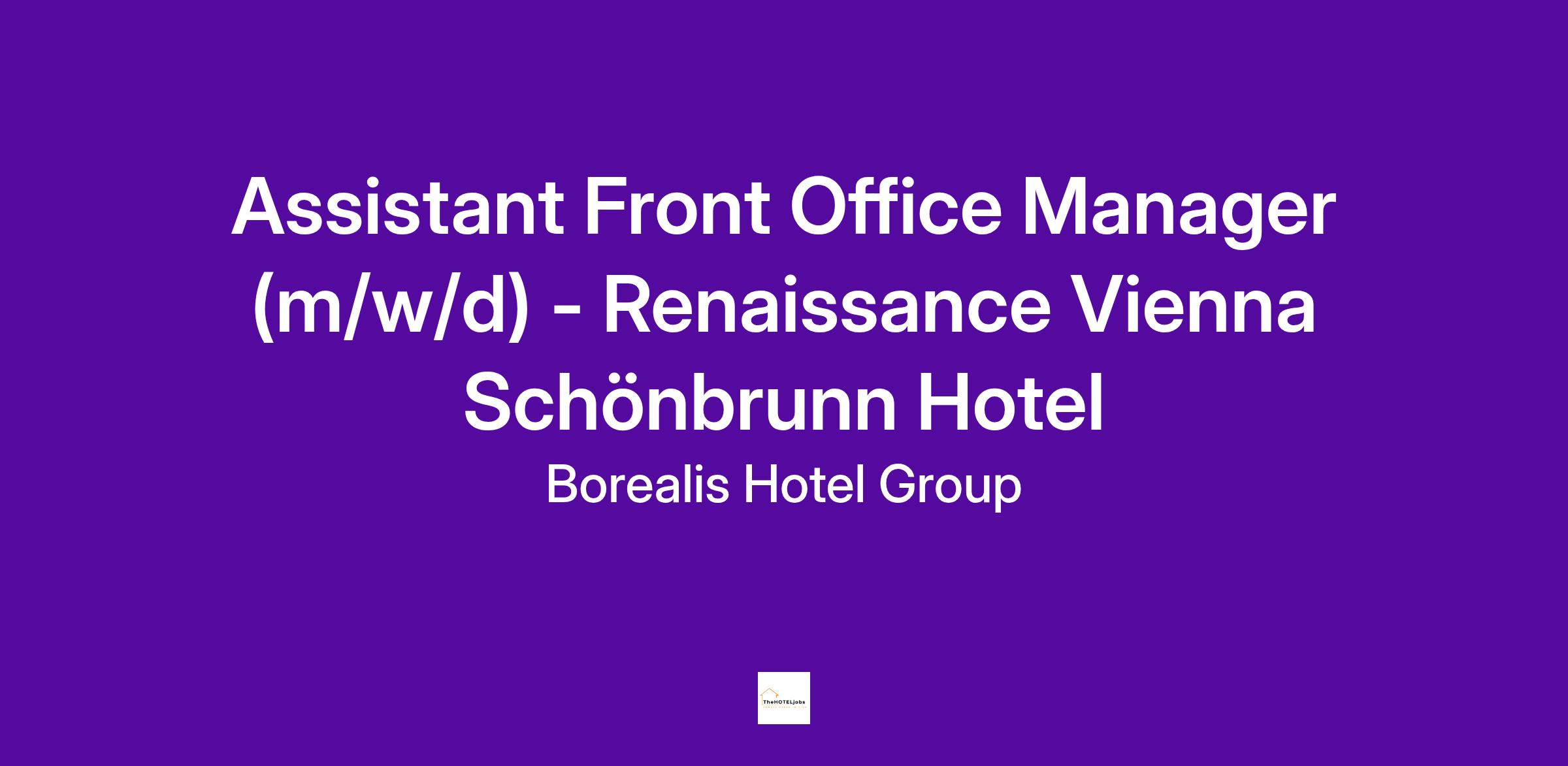 Das Renaissance Wien Schönbrunn Hotel ist kein Ort zum bloßen Übernachten – es ist ein Platz für Entdecker:innen, für Menschen mit Stil und Herz. Für unser motiviertes Front Office Team wird eine Persönlichkeit gesucht, die Leidenschaft, Struktur und Gastgebermentalität vereint – als Assistant Front Office Manager (m/w/d).