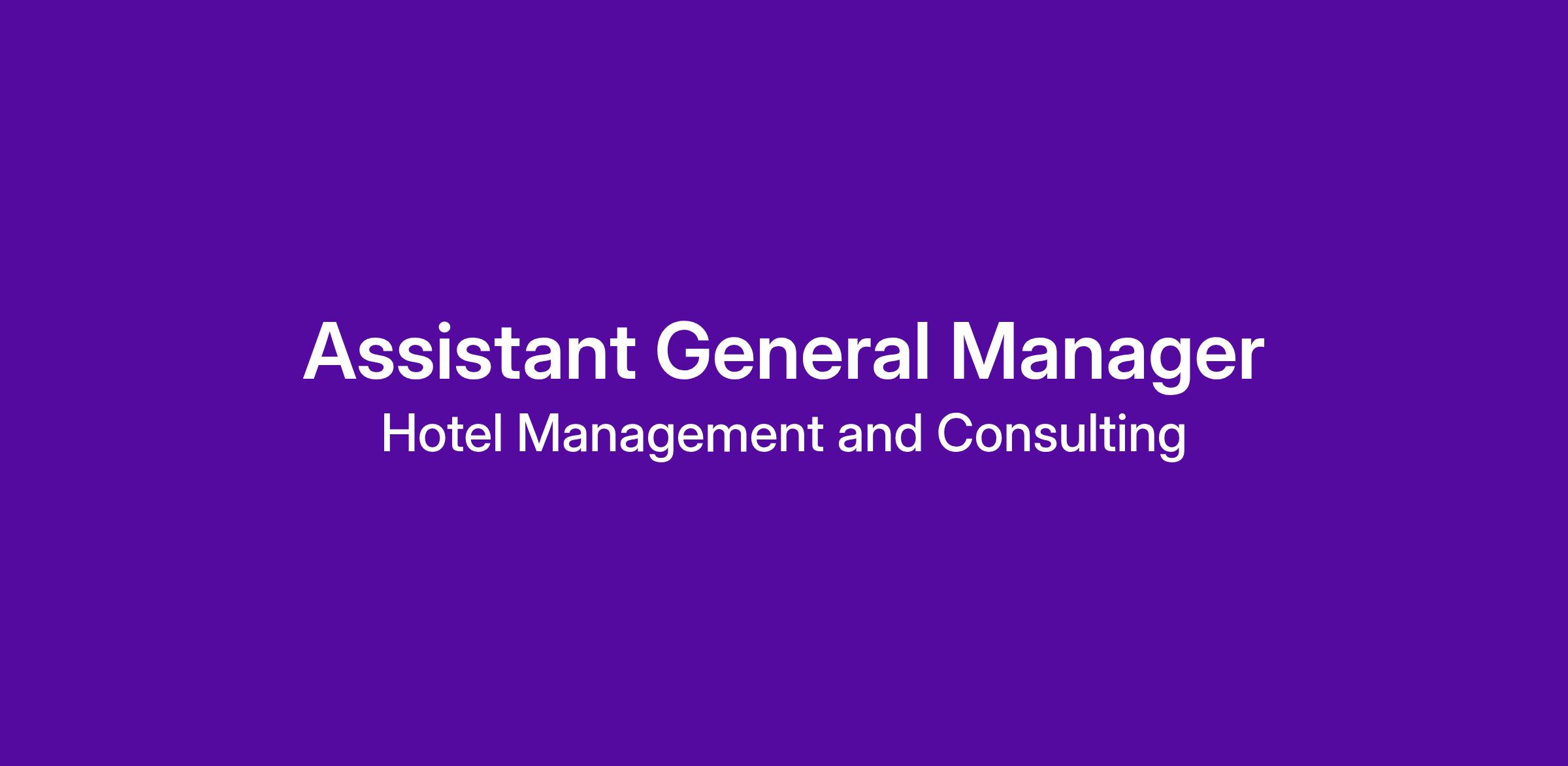 About the Role: Hotel Management & Consulting is seeking an experienced and dynamic Assistant General Manager to join our team. If you are an energetic leader with a passion for hospitality and team development, we want to hear from you! You will lead the operations in the absence of the General Manager an assist them with leading the team, ensuring that our service standards are consistently exceeded.