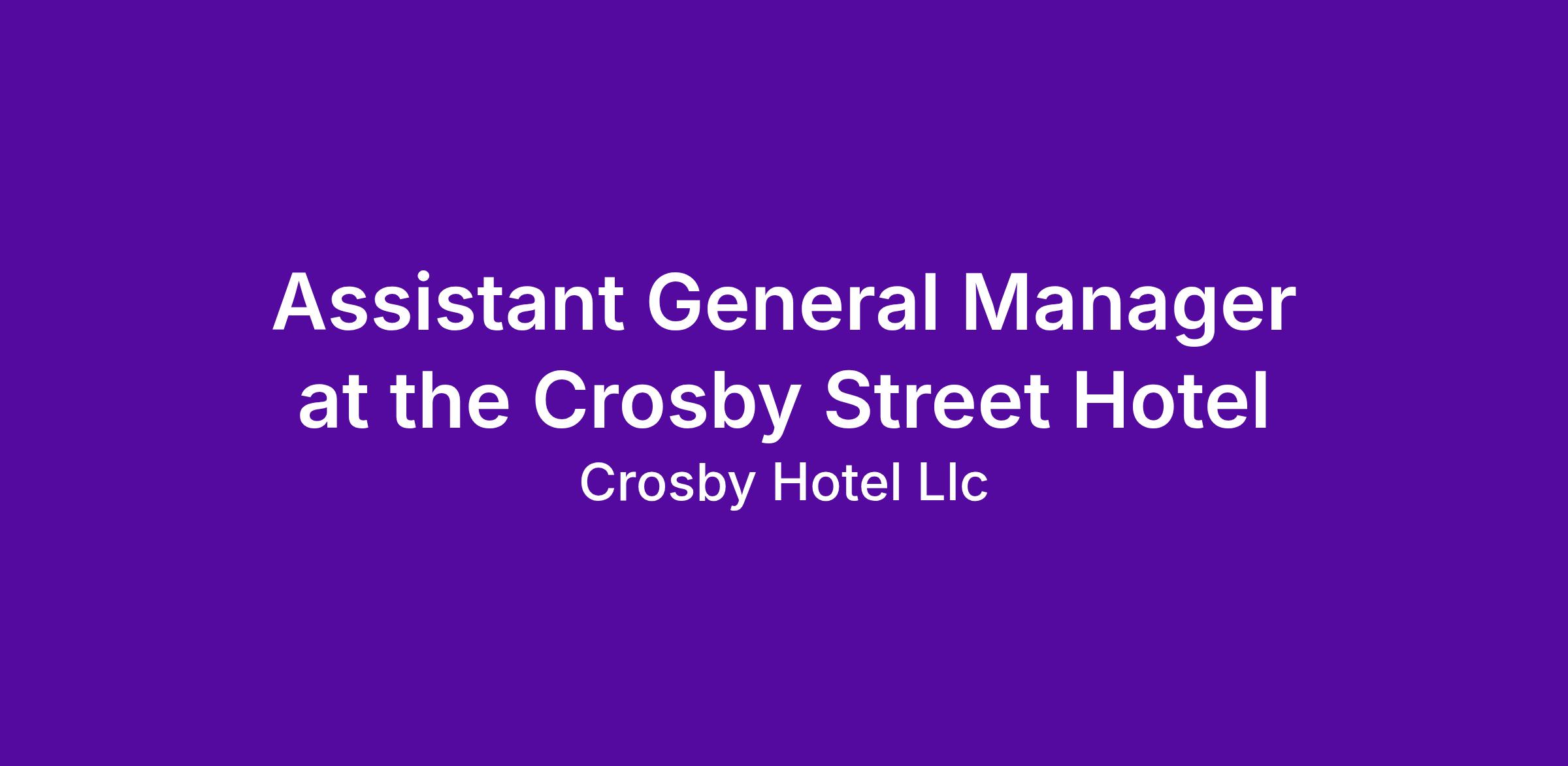 Reporting directly to the General Manager of Crosby Street Hotel, the Assistant General Manager (AGM) is a senior operational leader responsible for delivering highly personalized, memorable guest experiences. The AGM sets the tone through visible leadership and meaningful guest interaction while collaborating closely with all hotel departments to uphold and advance Firmdale’s culture, service standards, and brand values. This role is instrumental in developing high-performing teams and ensuring consistently intuitive, faultless service throughout the hotel.