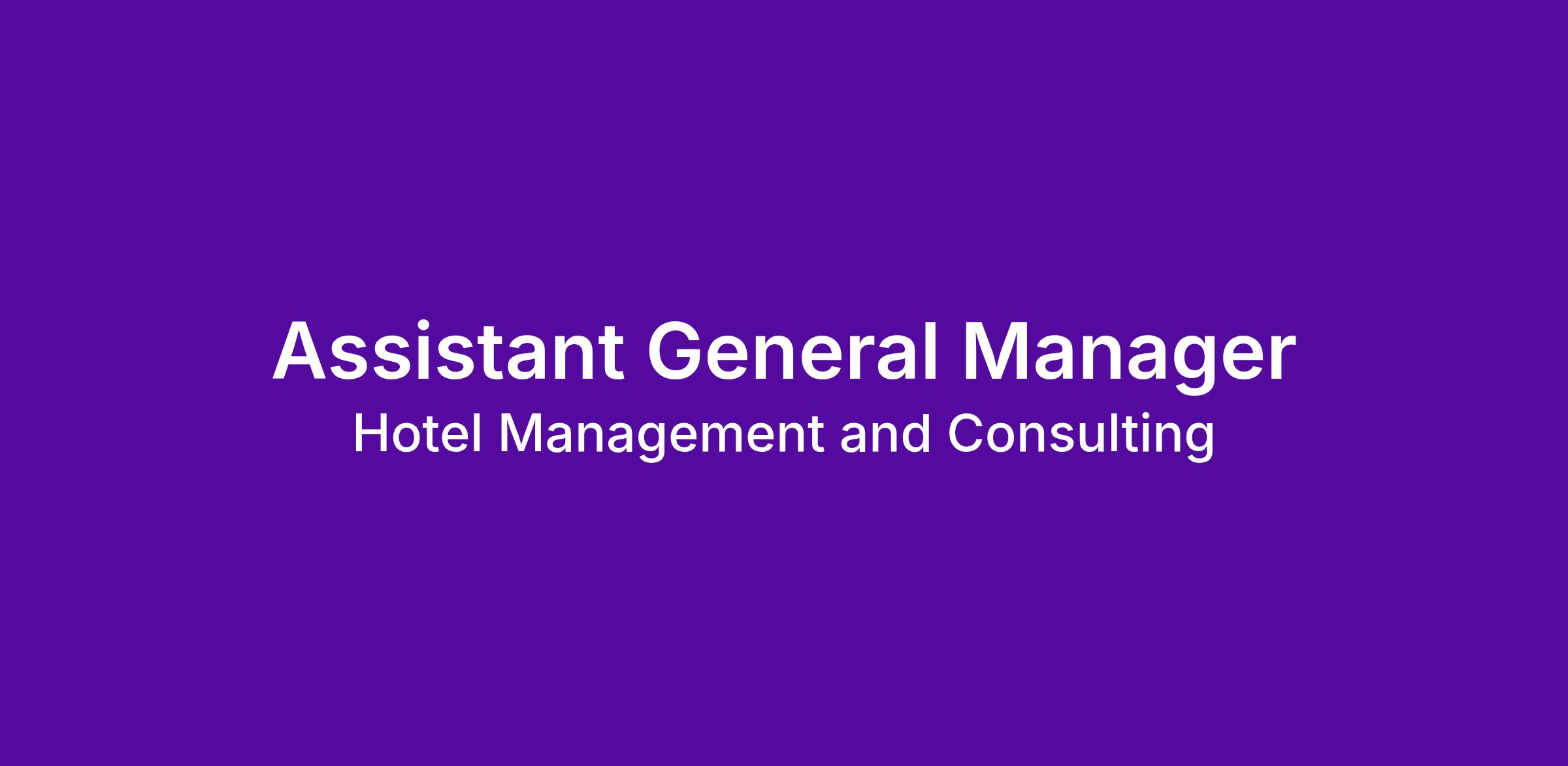 About the Role: Hotel Management & Consulting is seeking an experienced and dynamic Assistant General Manager to join our team. If you are an energetic leader with a passion for hospitality and team development, we want to hear from you! You will lead the operations in the absence of the General Manager an assist them with leading the team, ensuring that our service standards are consistently exceeded.