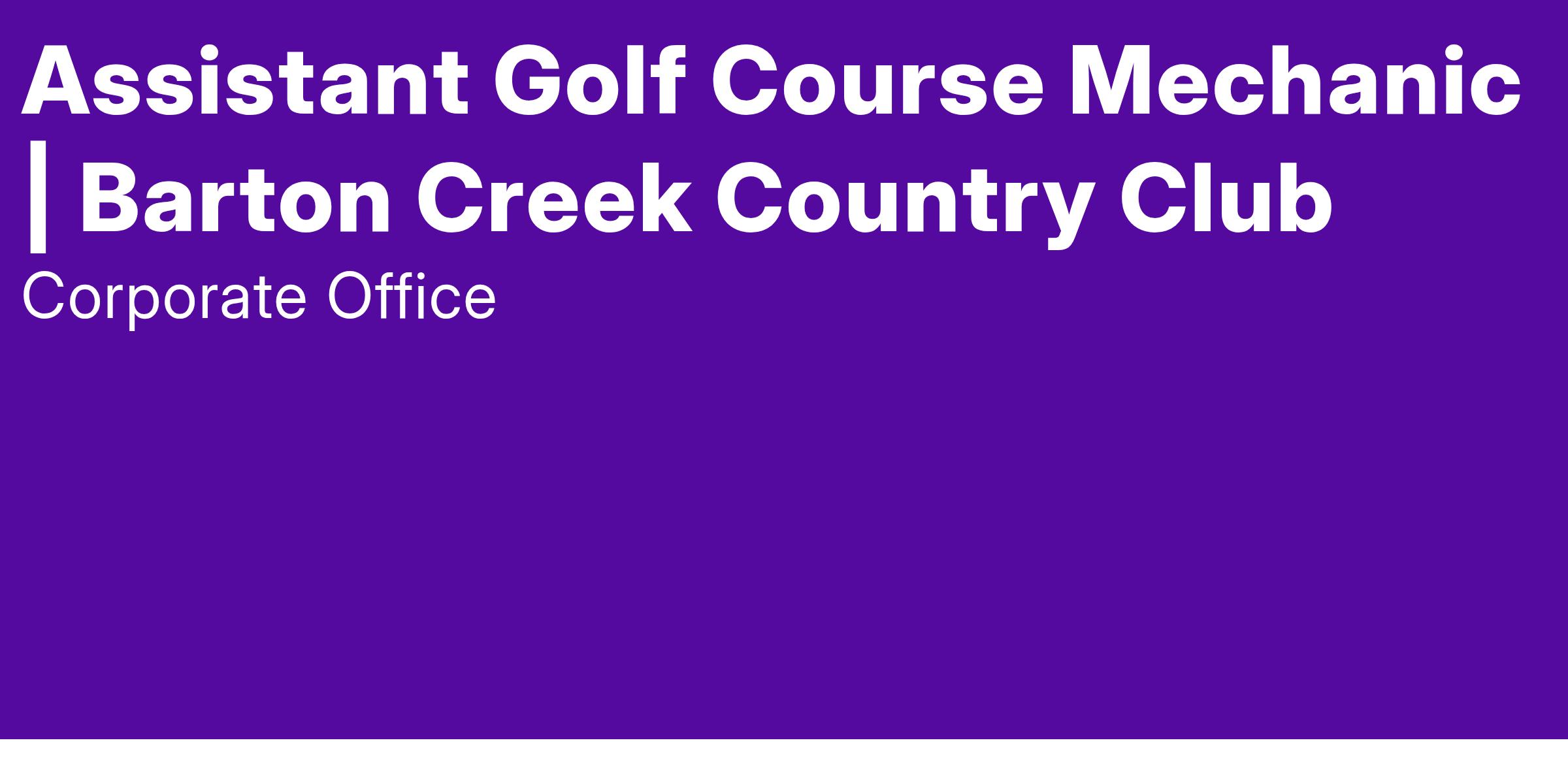 Omni Hotels & Resorts is seeking a Assistant Golf Course Mechanic for the beautiful Barton Creek Country Club!