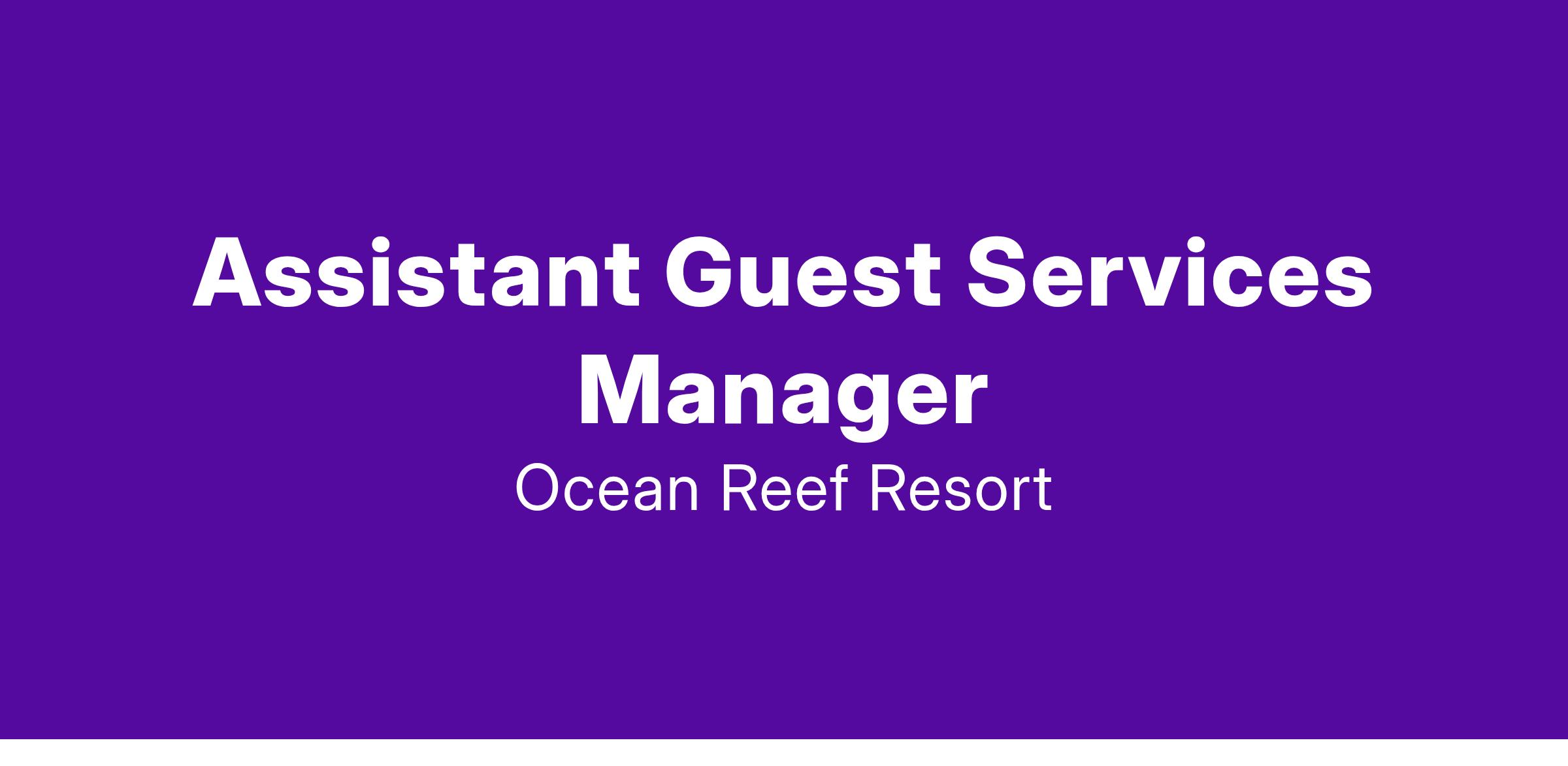 Assistant Guest Services Manager responsibilities include, but are not limited to: