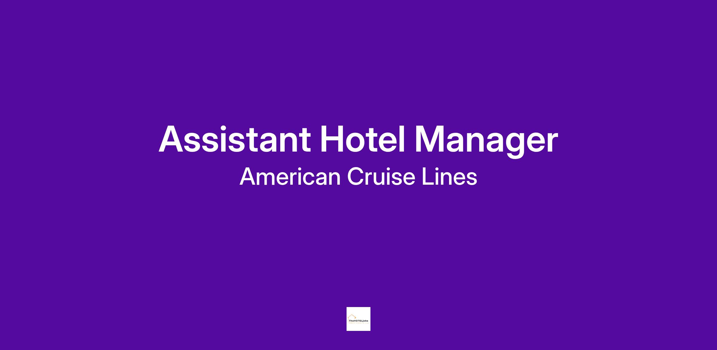 American Cruise Lines, the largest USA flagged cruise line in the United States, is looking to add Assistant Hotel Managers to our shipboard team for our 2025 season. American Cruise Lines only operates within the United States and has no more than 200 passenger vessels that create a one-of-a-kind small ship experience. With newly constructed vessels being added to our fleet, it is a great opportunity to join our shipboard management team.