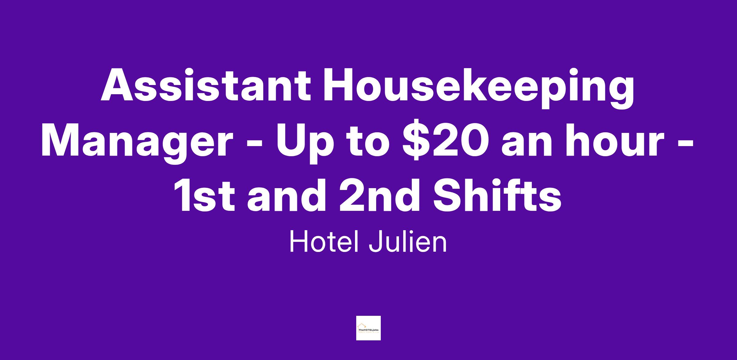 Assistant Housekeeping Manager - Up to $20 an hour - 1st and 2nd Shifts