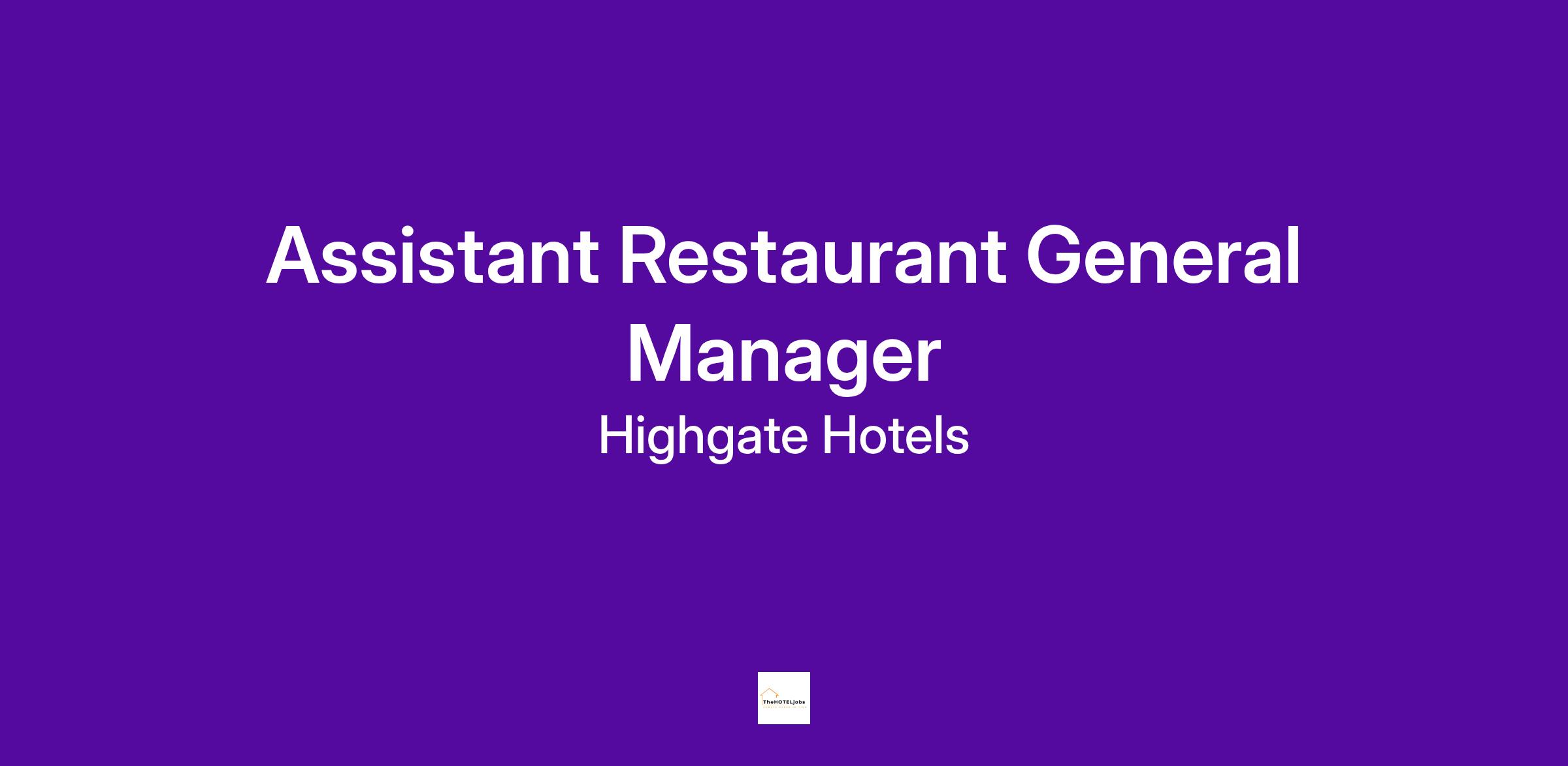 The Assistant Restaurant General Manager is responsible for assisting the General Manager with all aspects of the restaurant operations, while maintaining a profitable F&B outlet and high quality products and service levels. They are expected to market ideas to promote business; reduce employee turnover; maintain revenue and payroll budgets; and meet budgeted productivity while keeping quality consistently high.