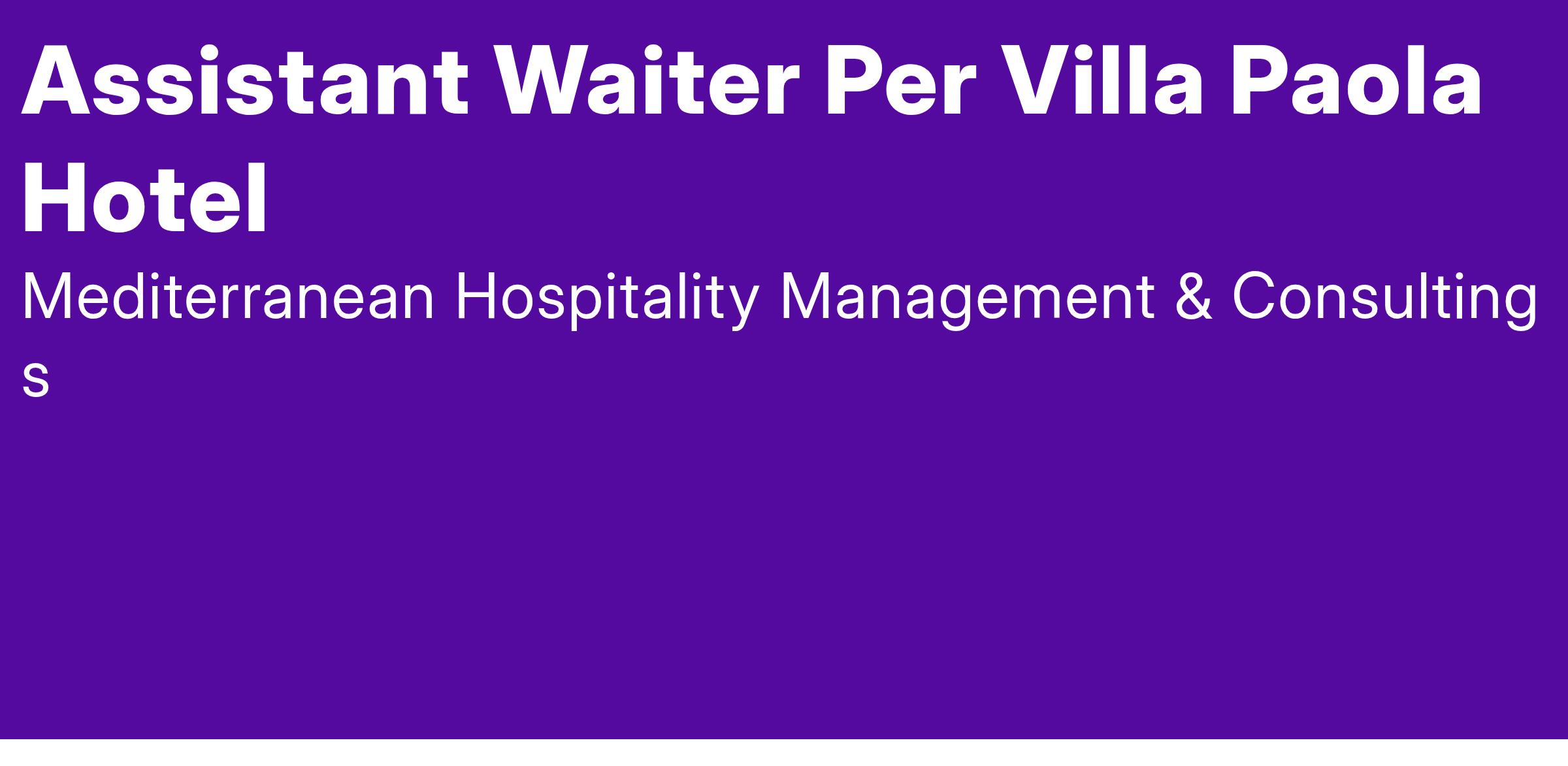 In particolare, stiamo selezionando la figura di ASSISTANT WAITER PER VILLA PAOLA HOTEL