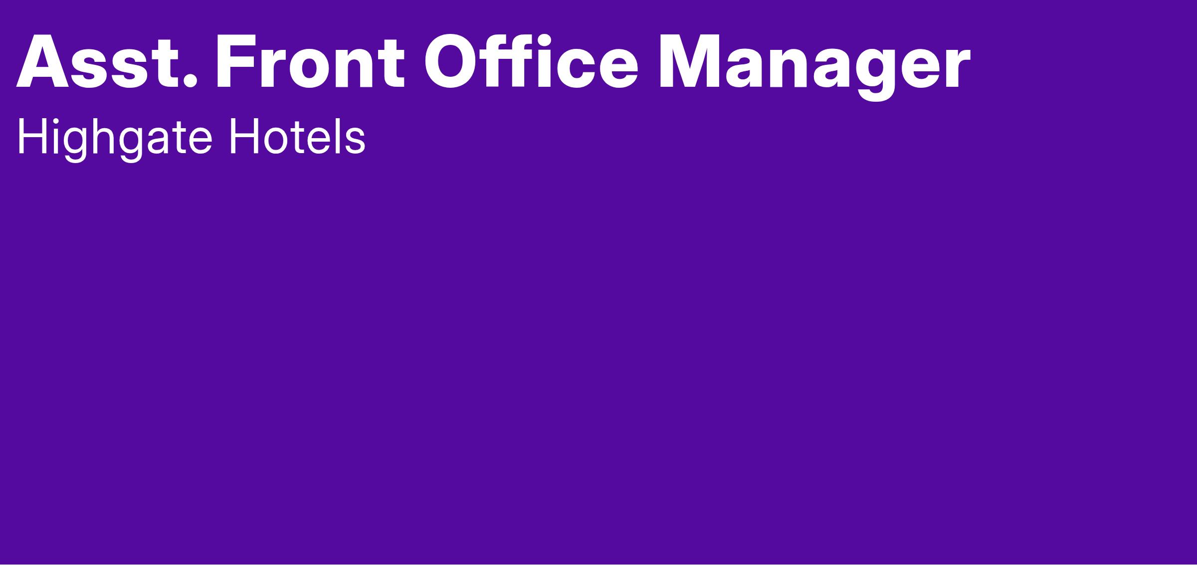 The Assistant Front Office Manager is responsible for ensuring the operation of the Front Office in an attentive, friendly, efficient and courteous manner, providing all guests with quality service prior to and throughout their stay, while maximizing room revenue and occupancy.