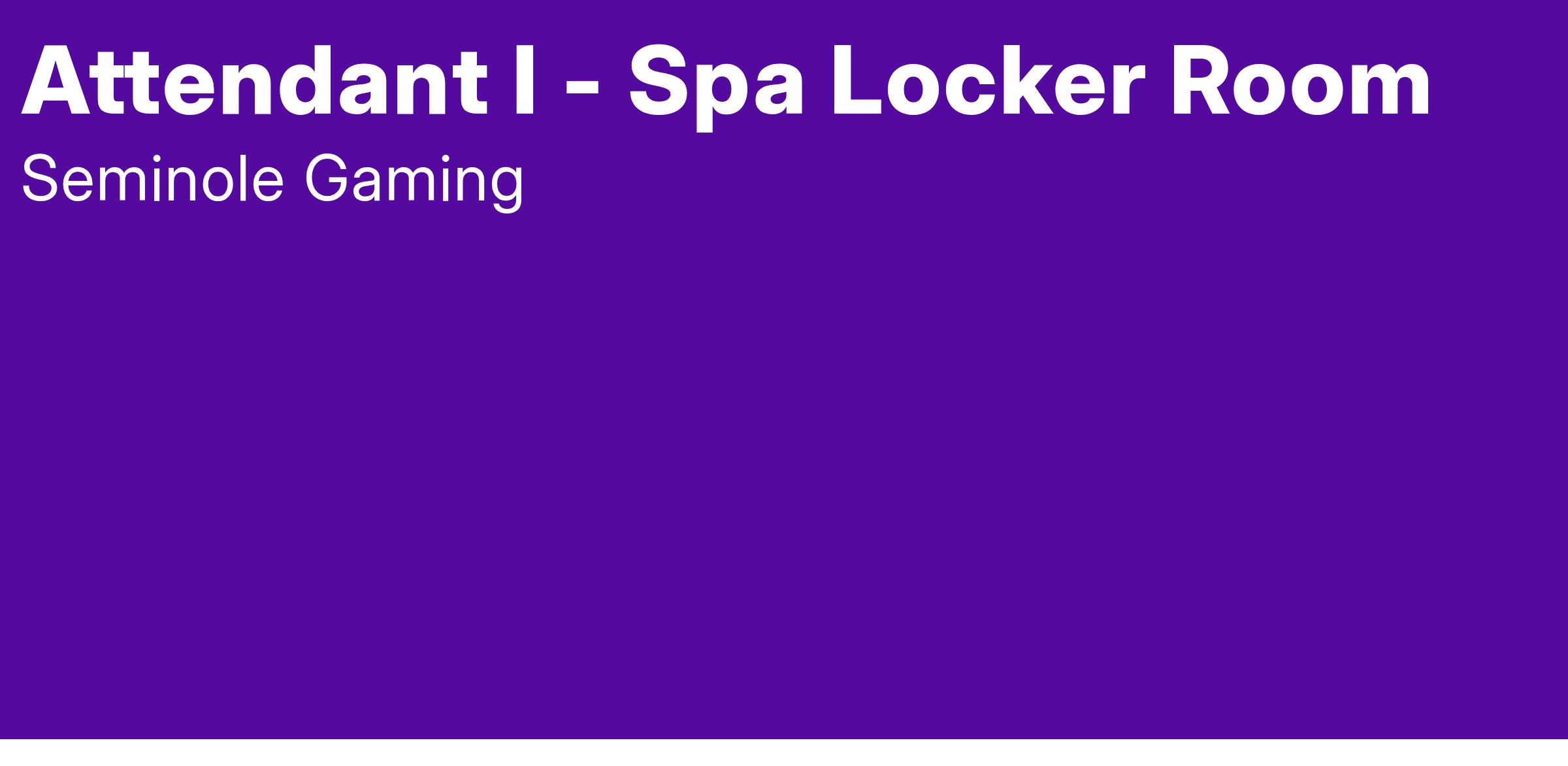 The Spa Attendant is responsible for providing courteous recreation services to guests and working to maintain the pool and recreation complex and spa facilities. The Attendant is specifically assigned to the Men's Locker Room.