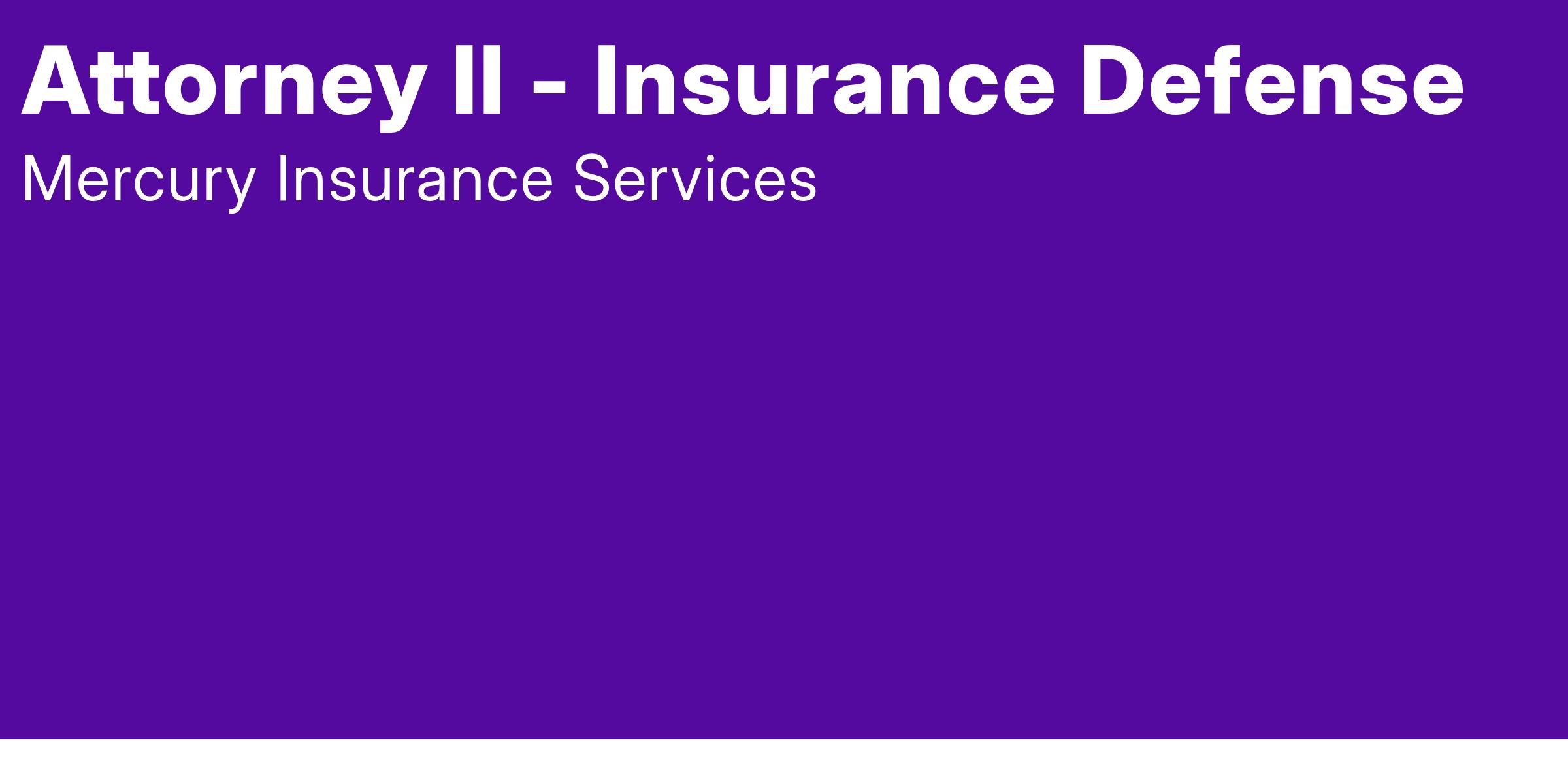 Minimum: 3+ years of insurance defense or related experience. Experience as the primary attorney defending personal injury laswsuits. 3+ insurance defense personal injury trials to verdict or equivalent litigation epxereince.