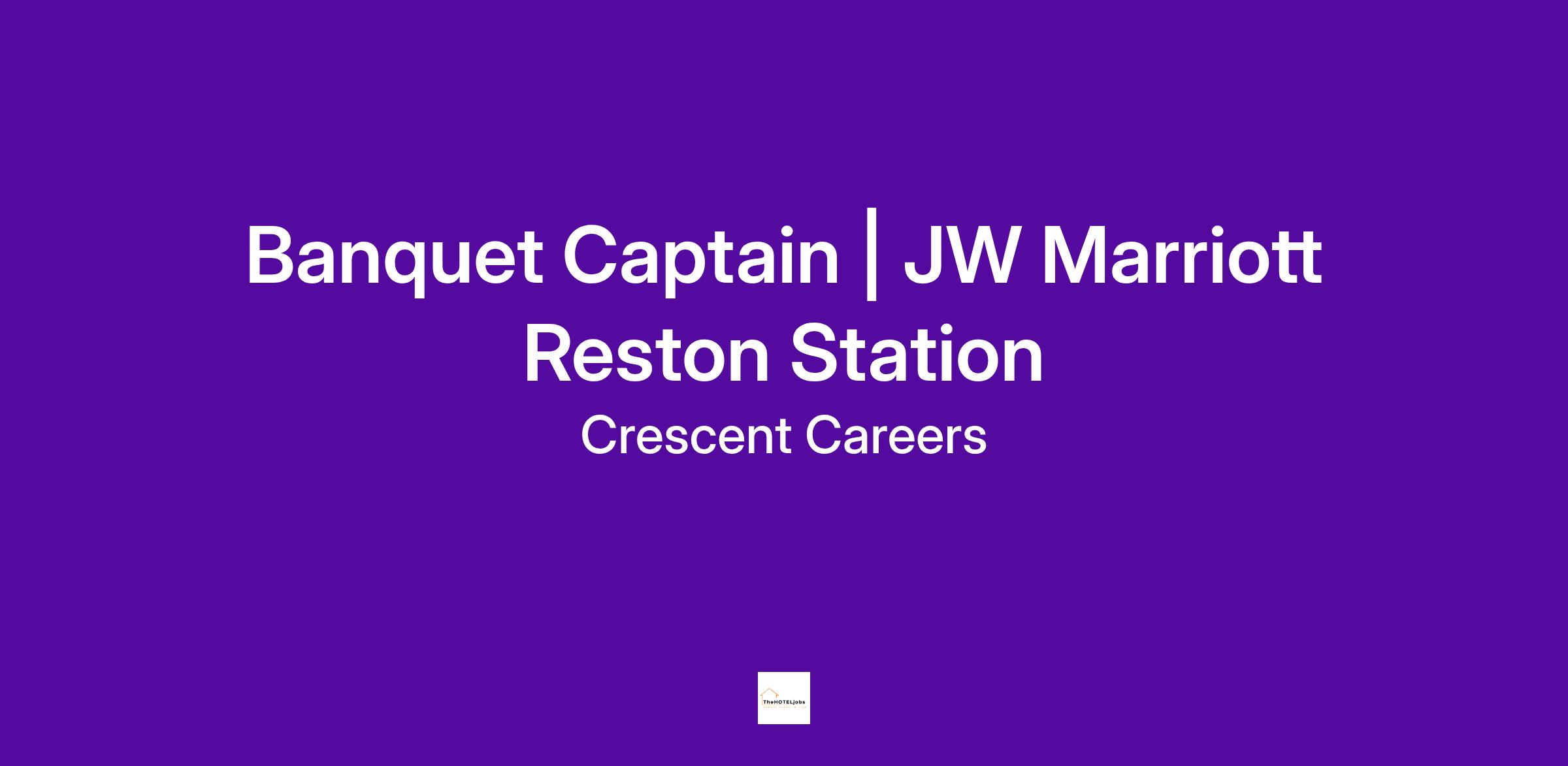 Crescent Hotels & Resorts is honored to announce an exciting opportunity for a talented Banquet Captain for the grand opening of JW Marriott Reston Station Residences this Fall!
