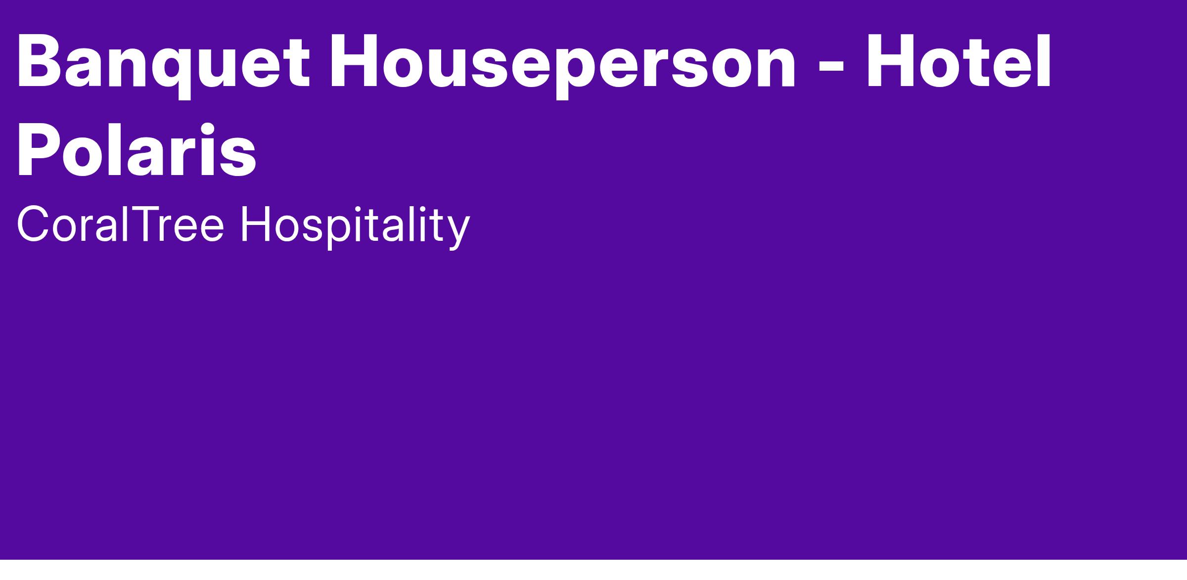 Are you ready to help shape the future of travel and hospitality at the new Hotel Polaris at the U.S. Air Force Academy? Hotel Polaris is seeking an exceptional Banquet Houseperson to join our team and play a vital role in shaping the success of Hotel Polaris, an instant icon on the hospitality landscape of Colorado Springs. Your efforts significantly influence the unique and distinctive experiences we seek to deliver to our guests and team members alike. We're looking for someone who wants to be a part of something bigger and shares our passion for creating unforgettable guest experiences, nurturing a vibrant company culture, and building strong connections with our communities.