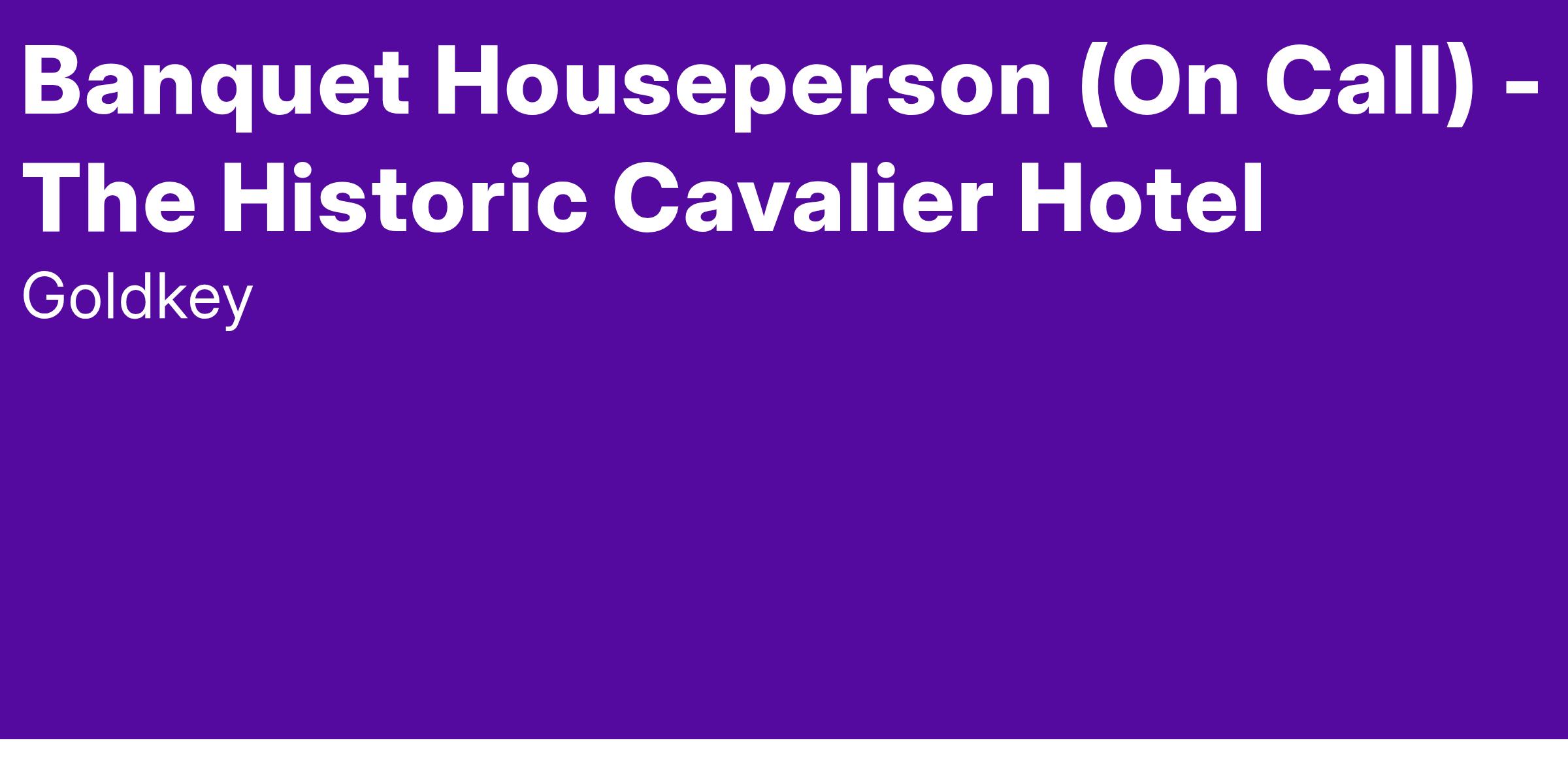 The Banquet Houseperson is responsible for the set up, break down and clean up of all banquet functions in accordance with the BEO and standards, specifications and inventories. The Banquet Houseperson maintains a clean, sanitary and safe event area at all times to ensure quality experience is delivered to guests. The successful Banquet Houseperson will effectively set-up the assigned function, maintain clean and organized banquet storage areas, and have exemplary attendance.