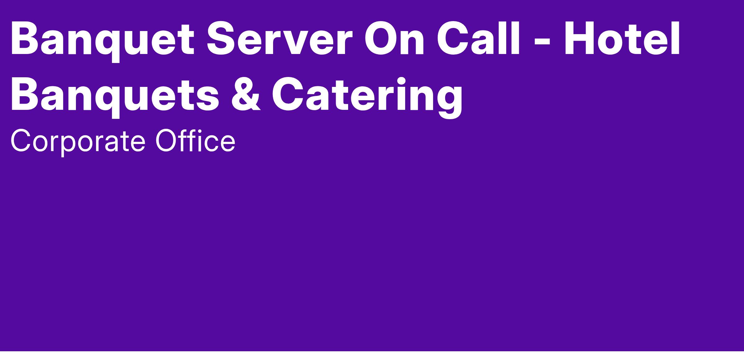 This on call position ensures that all food and beverage service for functions in the banquet department of the hotel are served on time and that all of Omni's professional standards are upheld. On Call Associates benefit from a flexible schedule based on business levels and Associates availability.