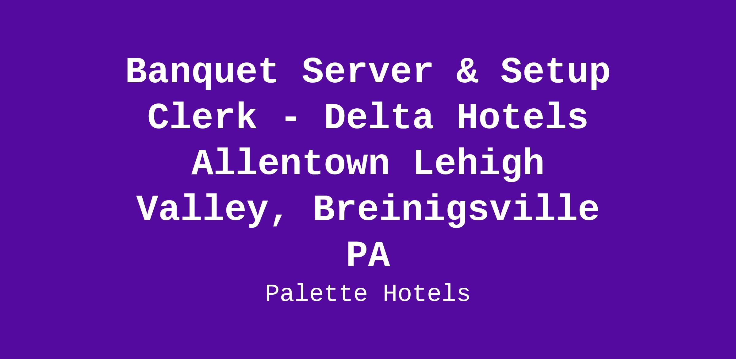 Palette Hotels, is an equal opportunity employer with policies prohibiting unlawful discrimination on the basis of any protected classification under applicable local, state and/or federal laws, which can include race, color, creed, sex, national origin, age, veteran status or physical or mental disability unrelated to job requirements.