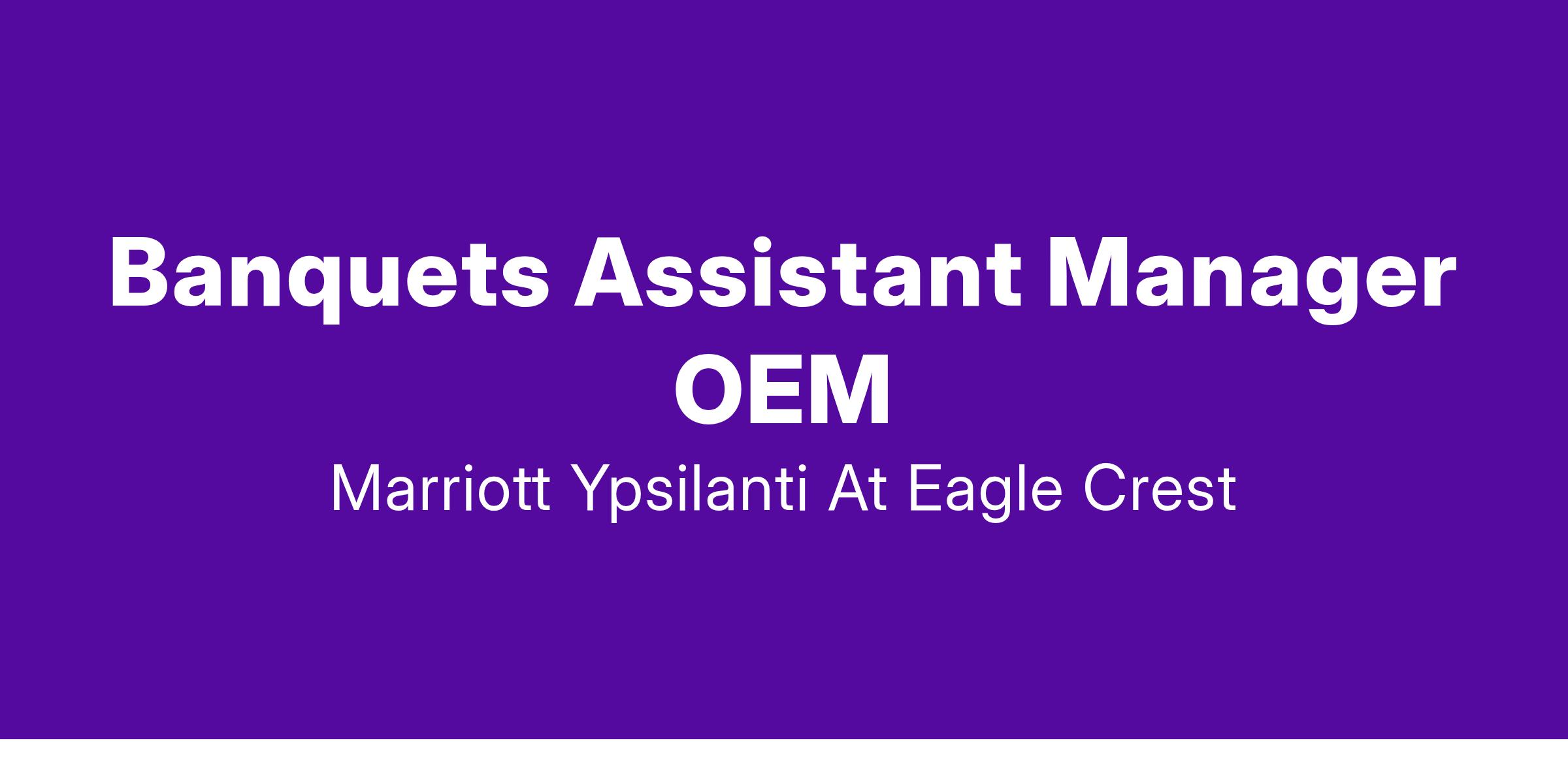 The Banquets Asst Manager is responsible for helping to ensure the efficient operation of the Banquet Department with a focus on cost control and exceptional guest service. The Banquet Asst Manager assists with oversight of all aspects of a banquet or event including set-up serving and cleanup. This incumbent in partnership with the Banquets Manager is in charge of hiring training coaching disciplining and reviewing banquet staff. Management-level associates are expected to work as much of each workday as is necessary to complete their job responsibilities; for OEM associates overtime does apply and is calculated accordingly.