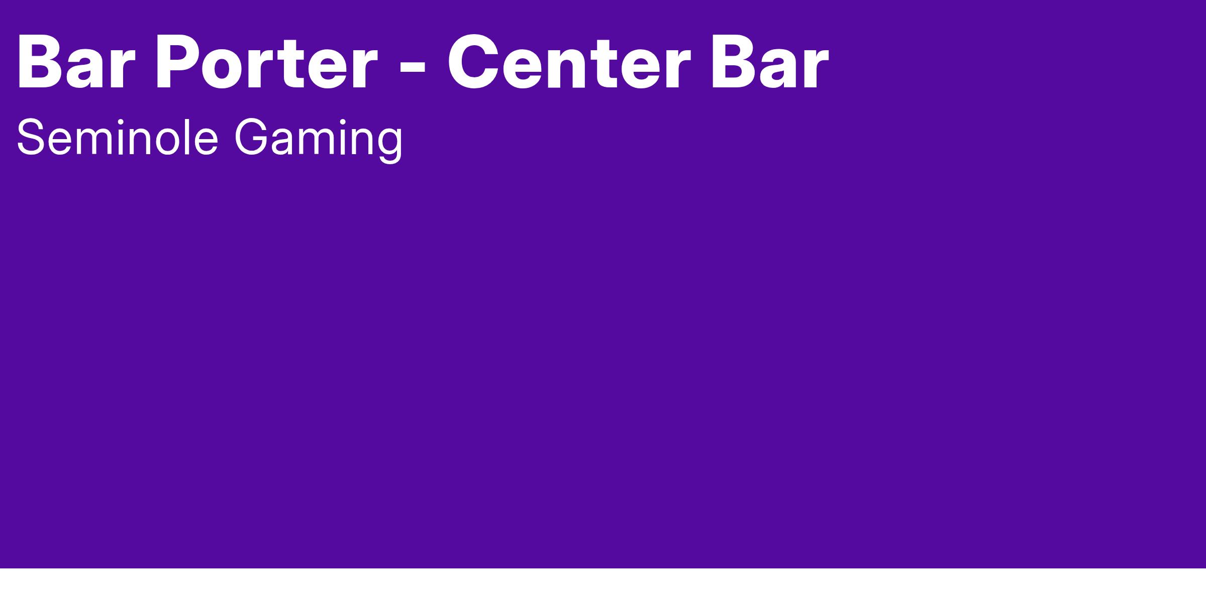 The Bar Porter is responsible for the area relative to supplies, equipment and the removal of empty or soiled articles. Creates a high standard of cleanliness to bar, according to established policies, so guests enjoy a safe and memorable experience.