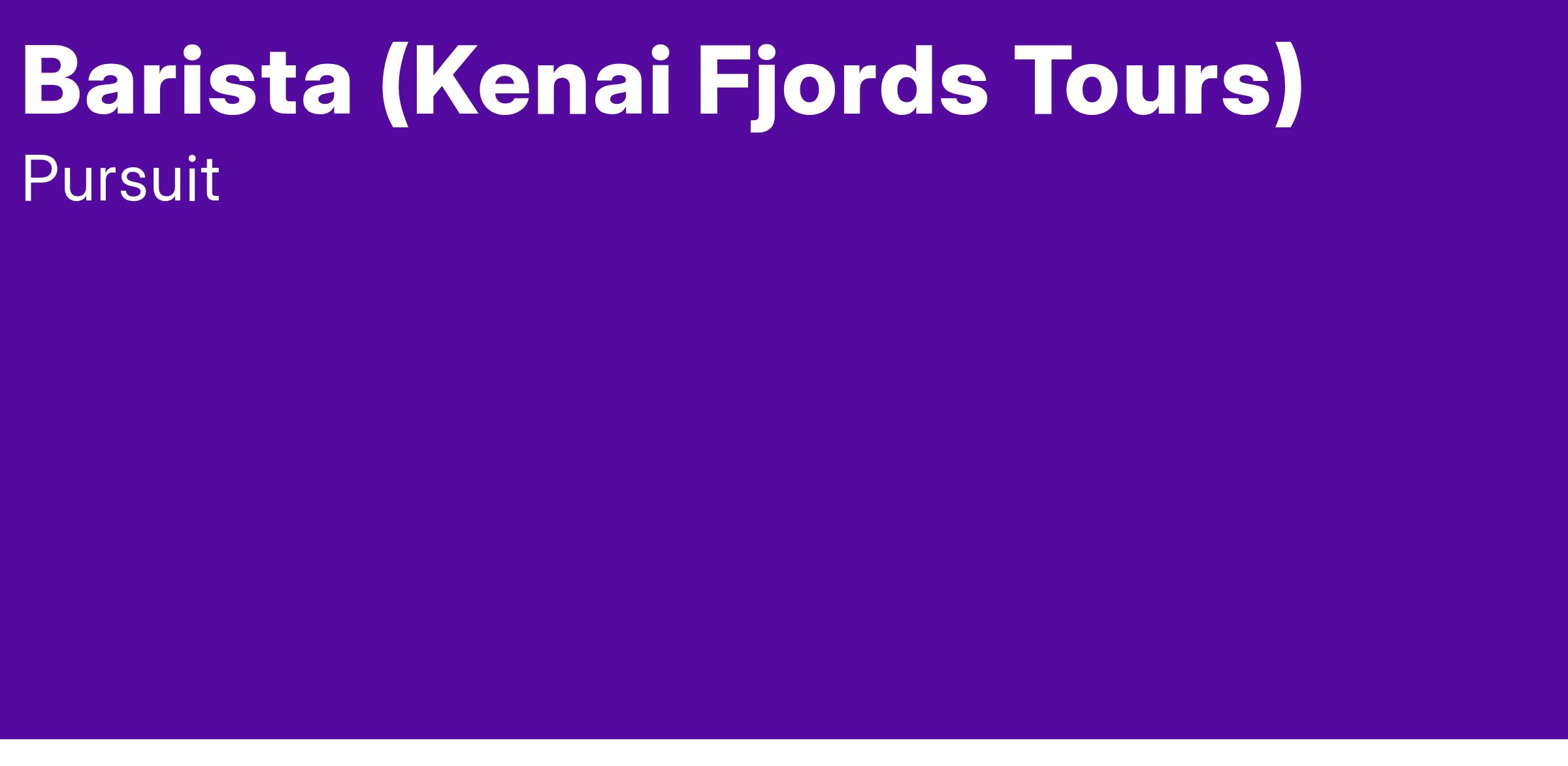 Safety, anticipating guest needs, honoring our surroundings and bringing your best every day are the core values we live by in order to provide dynamic guest service at Kenai Fjords Tours. You will assist guests with beverage orders at the Espresso Bar in a profession, healthy, and pleasant manner. You will deliver excellent guest service, meet the guests' needs while following the guidelines of the establishment.