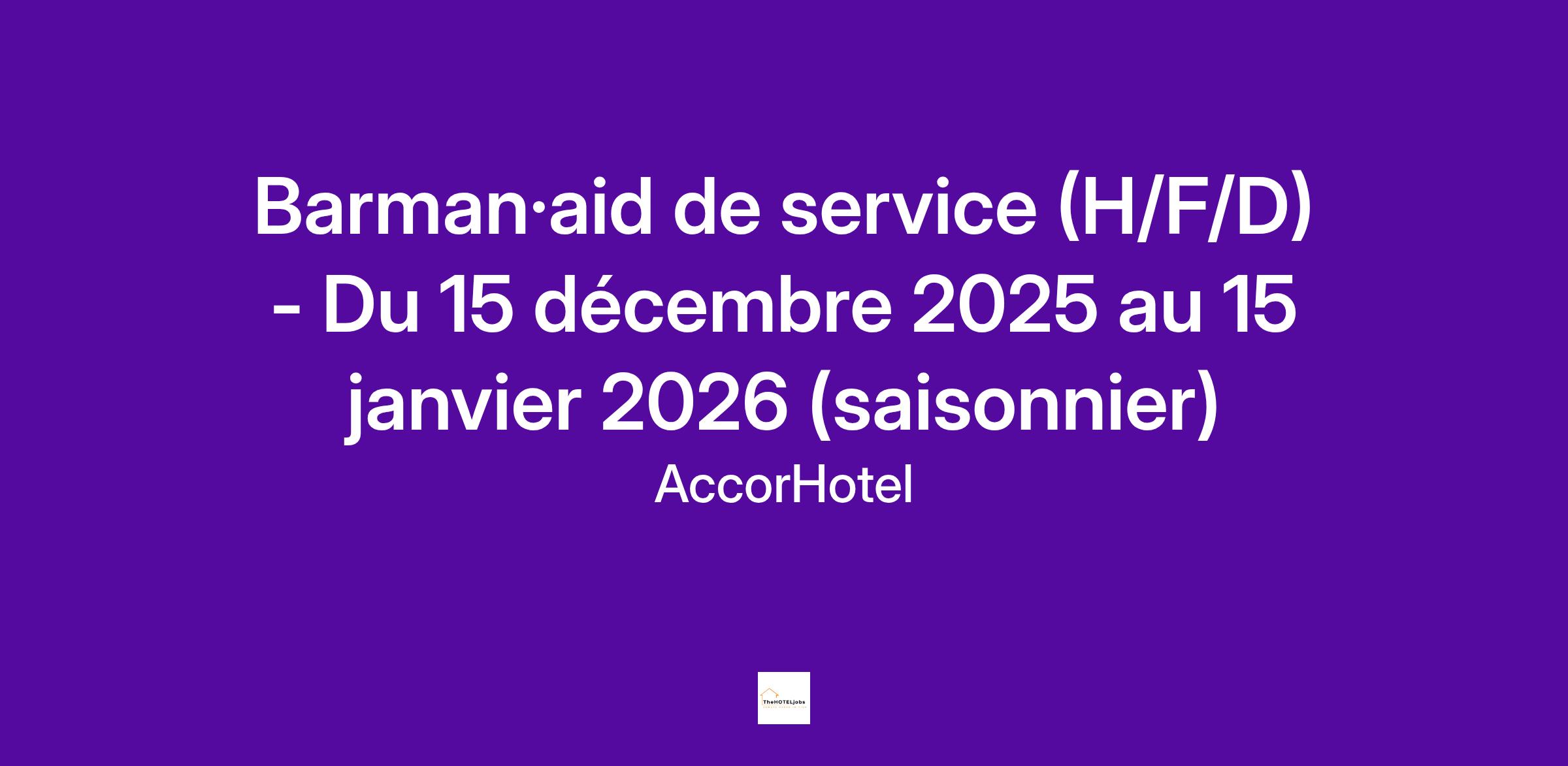 * Ce poste est saisonnier, soit du 15 décembre 2025 au 15 janvier 2026.