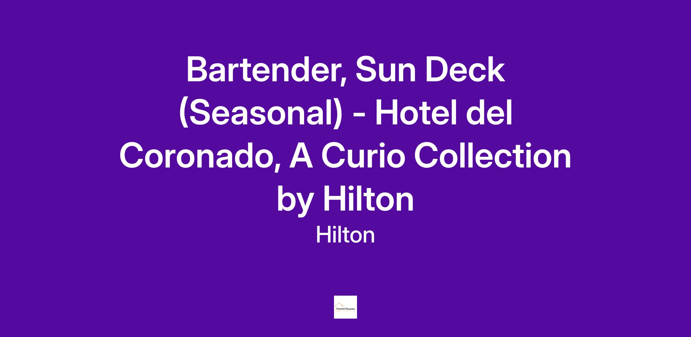 The iconic Hotel del Coronado is looking for a Seasonal Bartender to join the Sun Deck team! Join one of the last surviving wooden Victorian beach resorts in the world and after a $400M renovation and expansion, the resort is more stunning than ever.