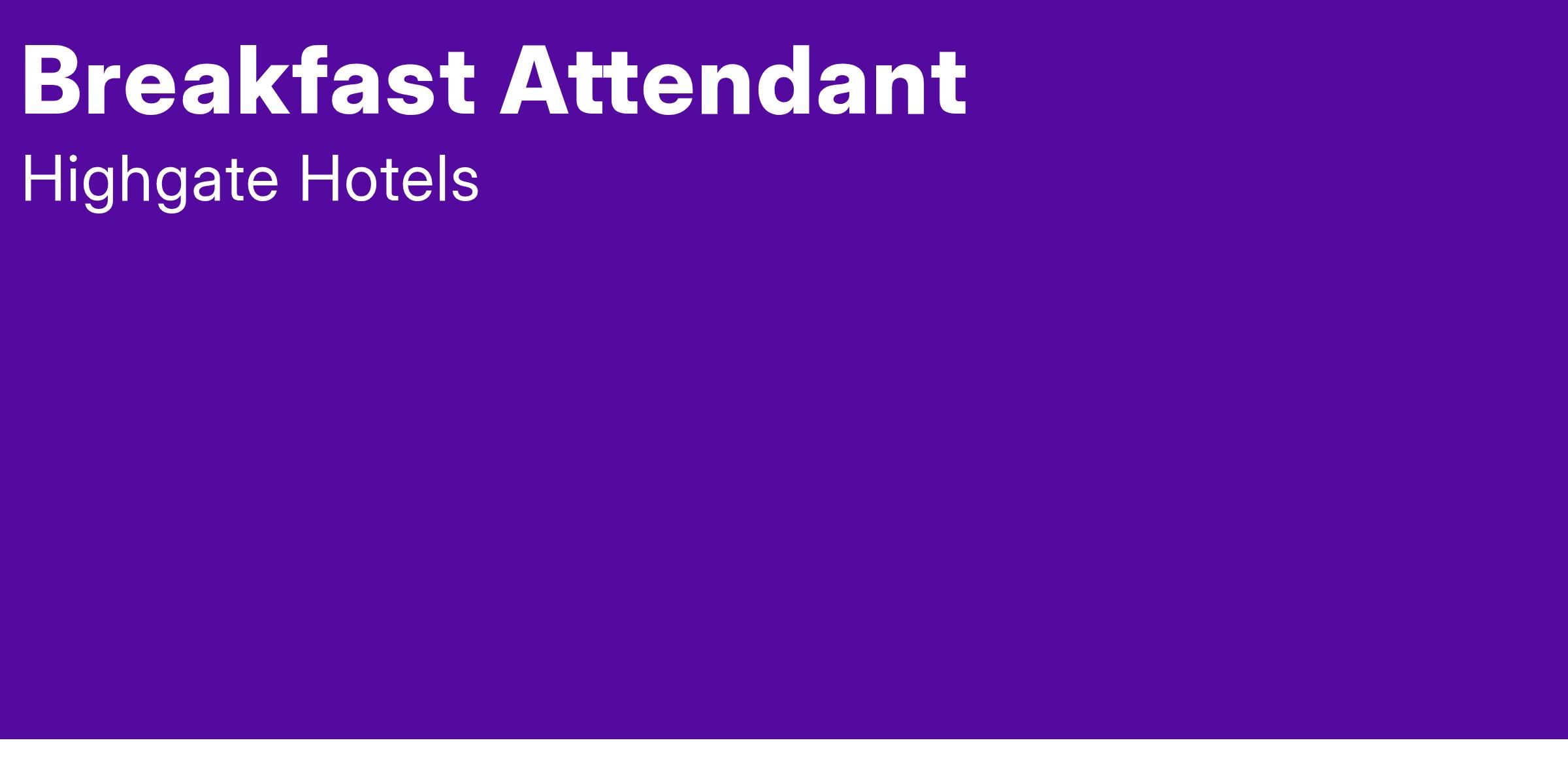 The Breakfast Attendant provides exceptional service in the hotel’s complimentary breakfast area, ensuring cleanliness and guest satisfaction, with availability on weekends and a starting wage of $15.00 per hour.