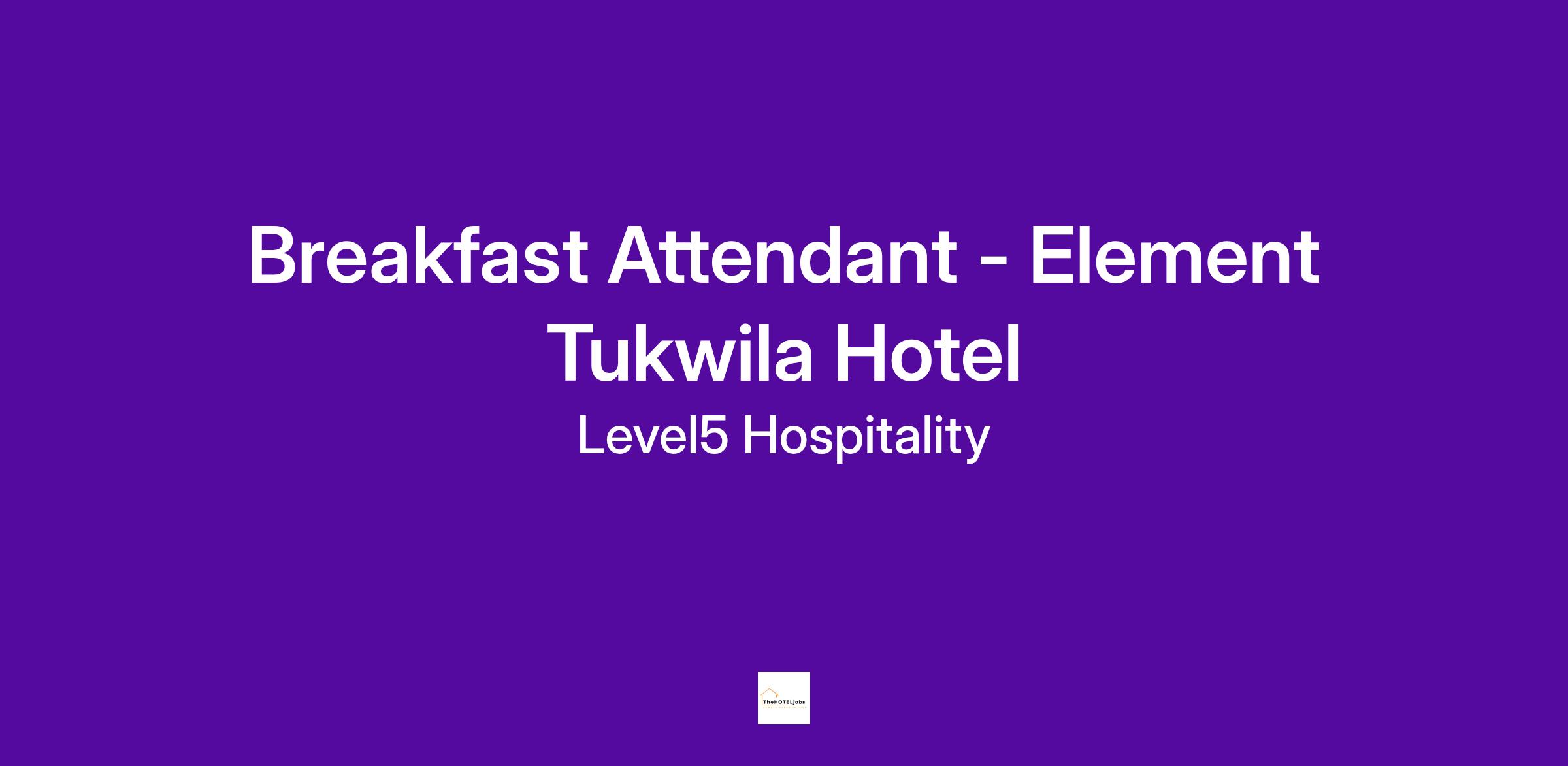 As a Breakfast Attendant @ the Element Tukwila Hotel, you will prepare the breakfast buffet bar for hotel guests while greeting and serving them in a friendly manner, consistent with brand and/or hotel sustainability standards. Your goal is to provide Level5 Hospitality and service for each and every guest!