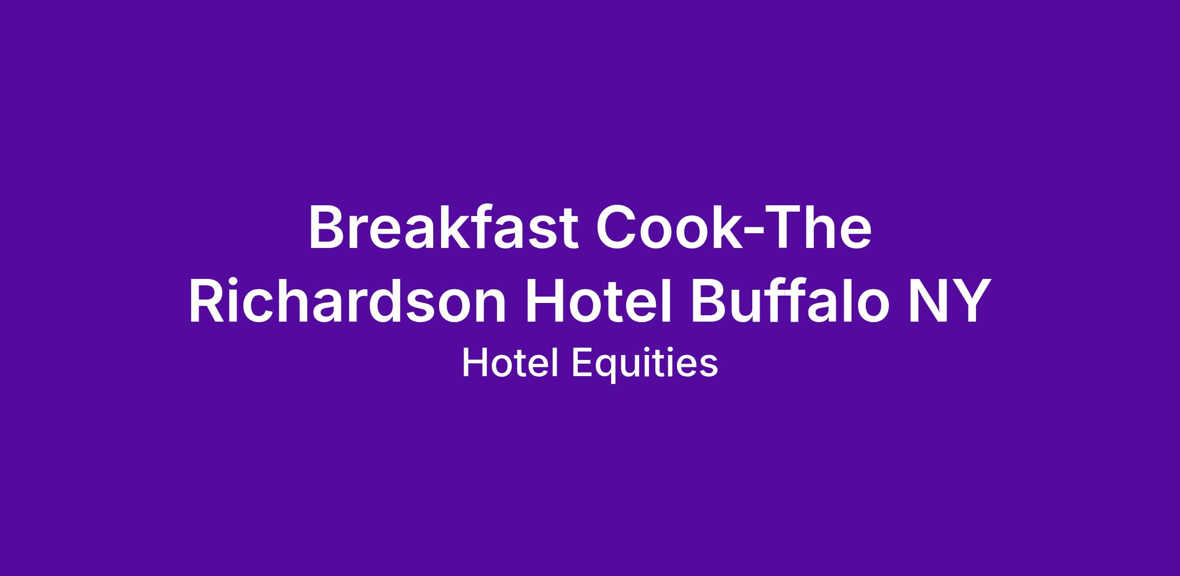 Hotel Equities, a multi-award-winning hotel development and hospitality management company, is currently searching for a remarkable Breakfast Cook for the Richardson Hotel in Buffalo, NY.