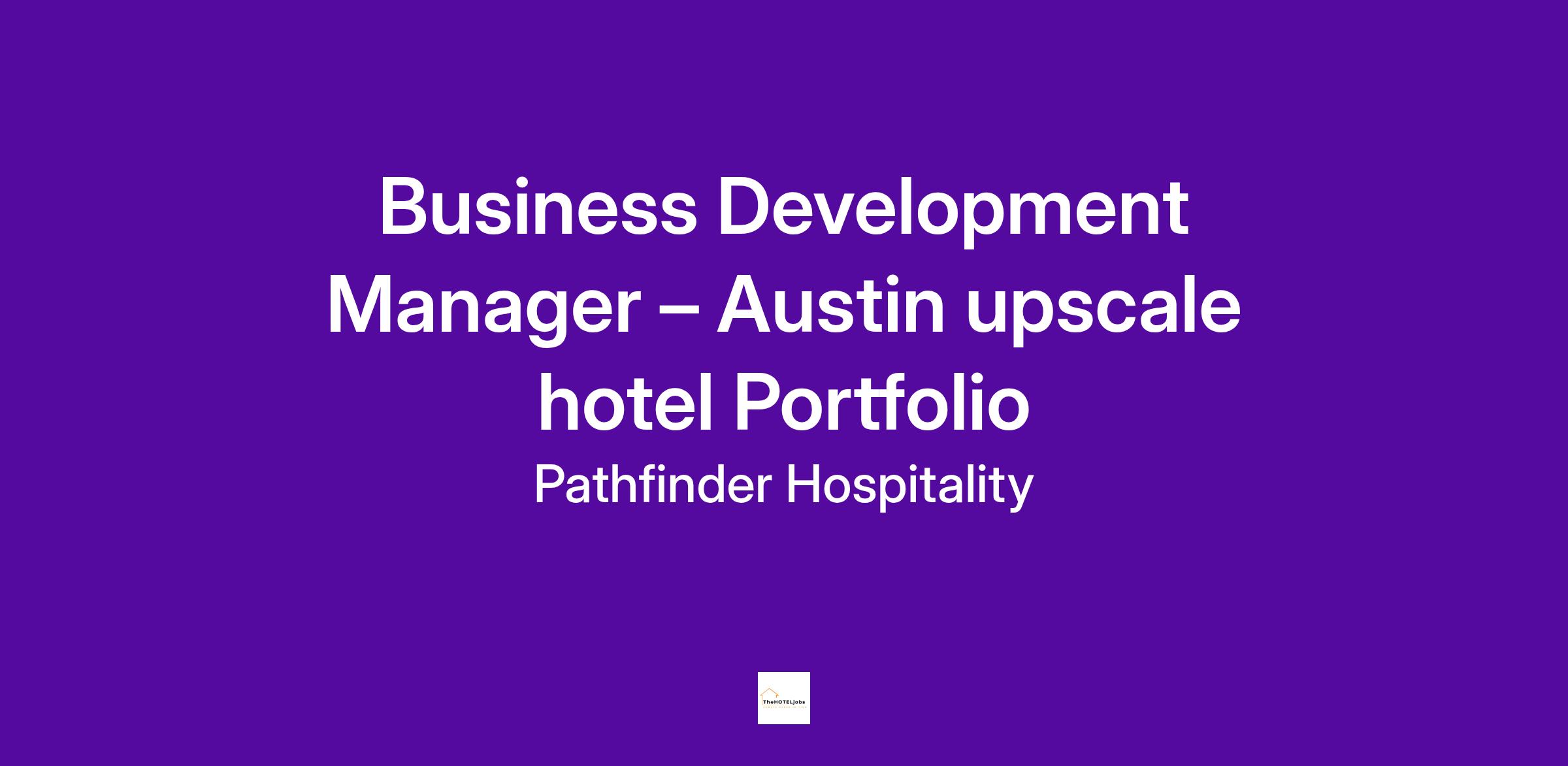 Business Development Manager - Pathfinder's Portfolio. (Aloft Austin Southwest, Holiday Inn Express Arboretum, with portfolio support for Staybridge Suites Houston Clear Lake)
