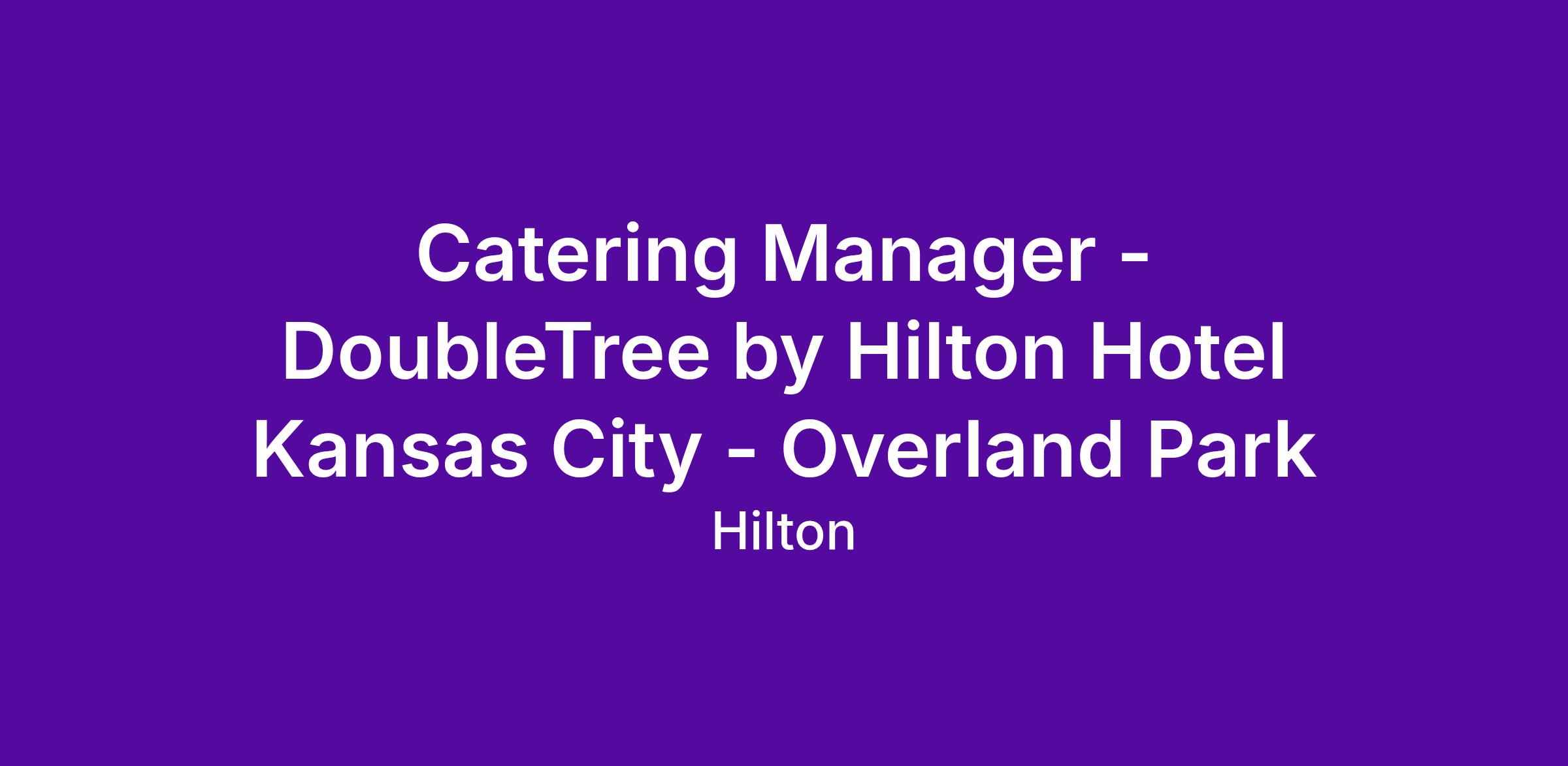 The beautiful DoubleTree by Hilton Hotel Kansas City – Overland Park is searching for a Catering Manager following an exciting internal promotion!