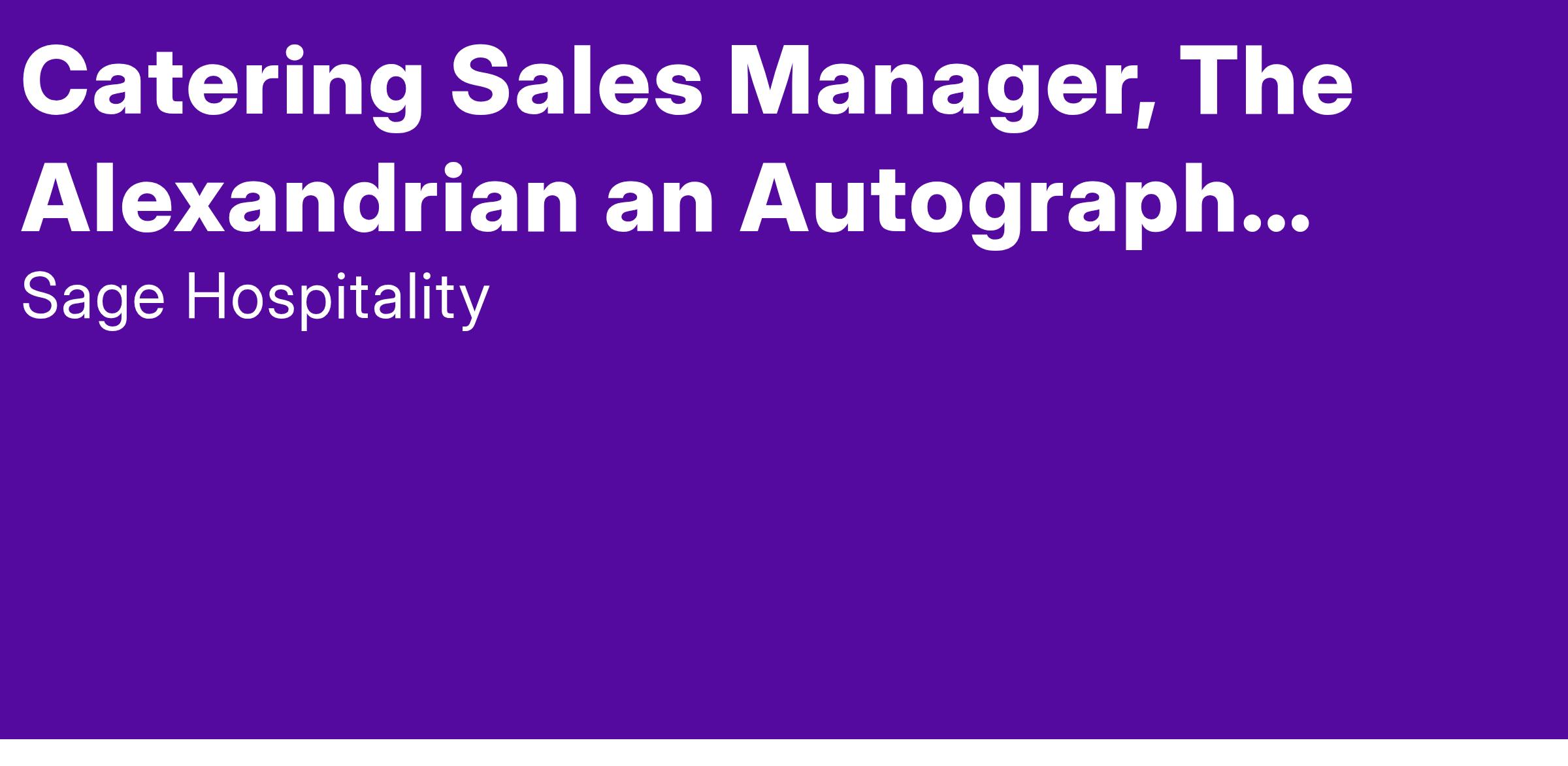 Sage Hotel Management is currently hiring for a Catering Sales Manager at The Alexandrian Hotel, in Alexandria, VA.