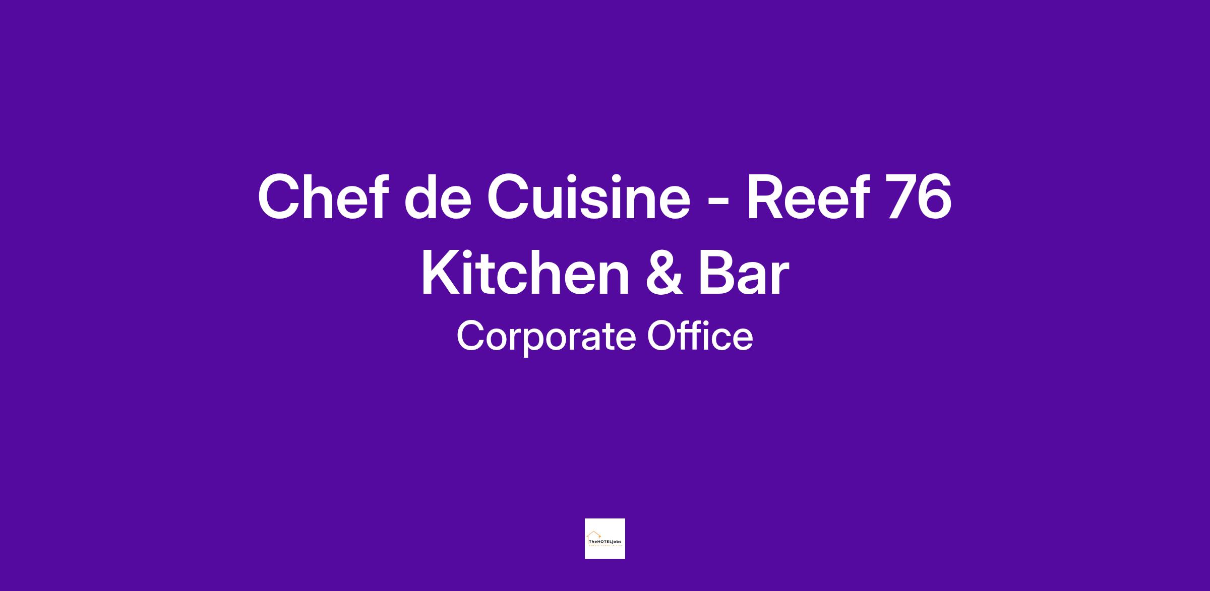 Responsible for directing, coordinating, training, and supervising the Reef 76 culinary team. To provide technical and administrative assistance to ensure efficient, effective operation of the kitchen and food production outlets.