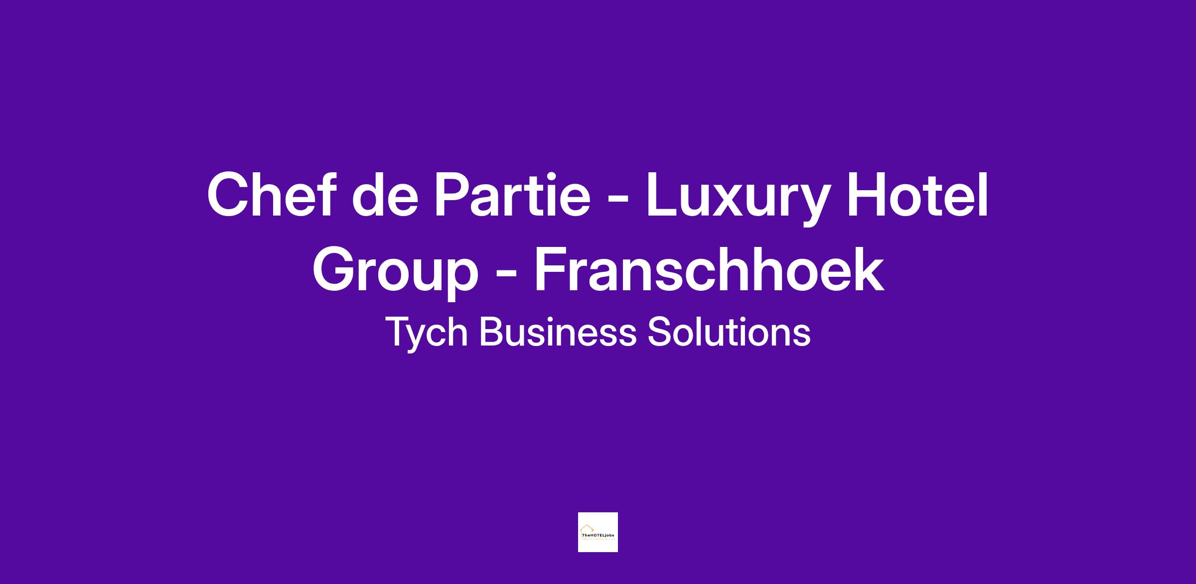An established Luxury Hotel Group in the heart of Franschhoek is seeking a passionate and skilled Chef de Partie to join their award-winning culinary team. This is an exciting opportunity to be part of a prestigious hospitality brand known for delivering exceptional guest experiences and refined dining excellence.